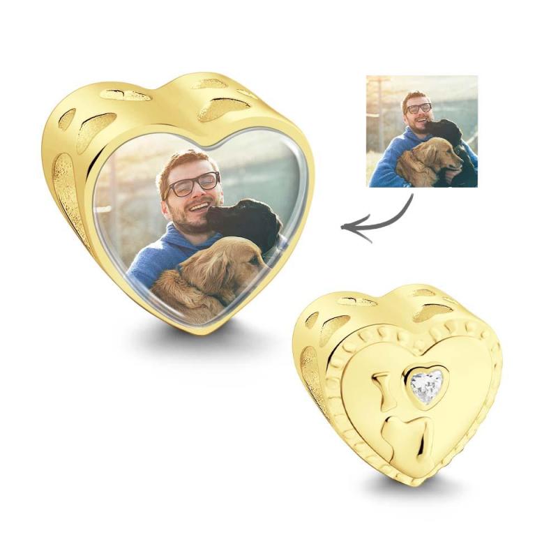 Heart Photo Charm With White Zircon I Love Pet Dog Theme Gifts For Pet Lovers