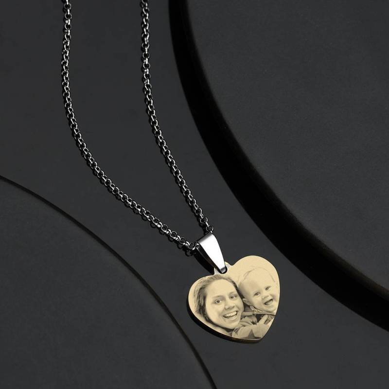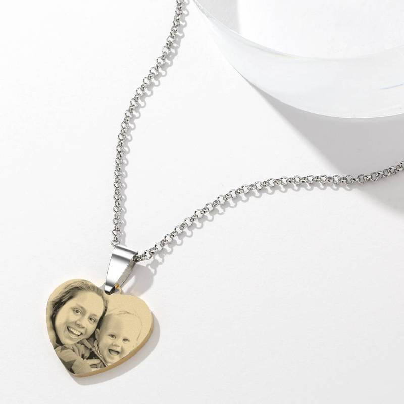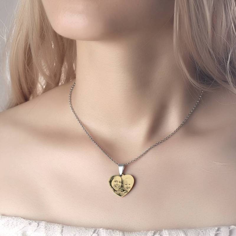 Women's Heart Photo Engraved Tag Necklace with Engraving 18k Gold Plated Stainless Steel