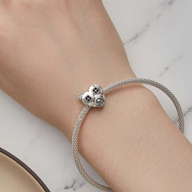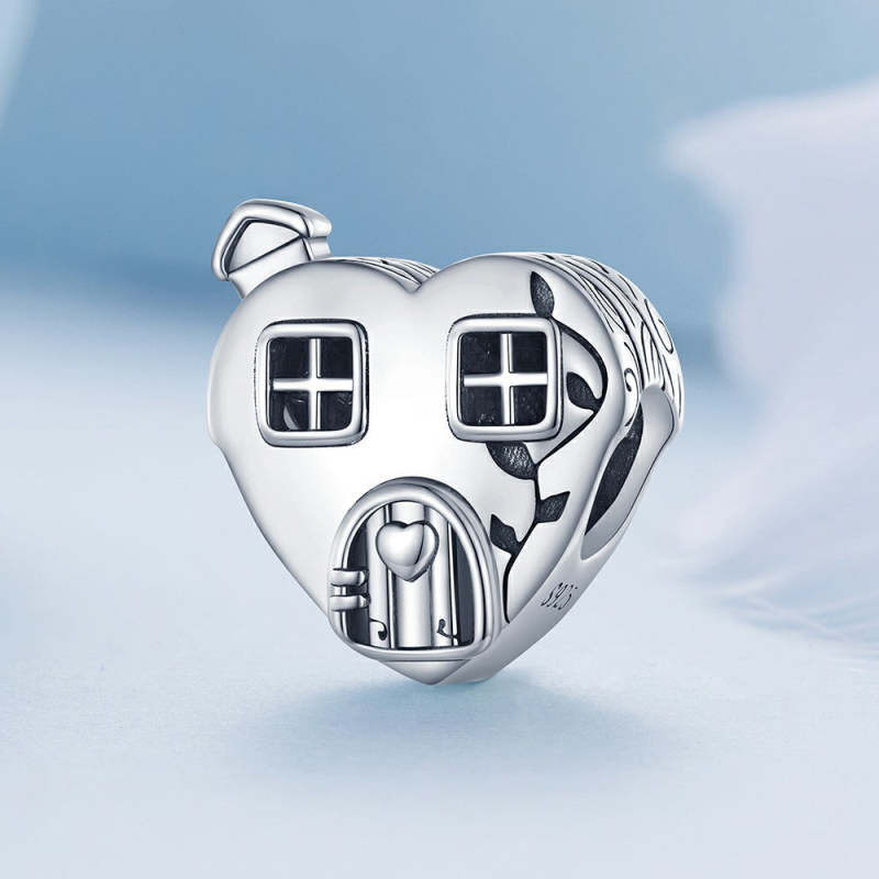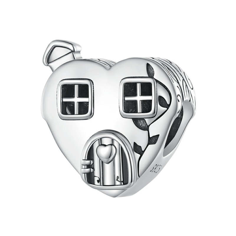 Heart Shaped House Charm Silver