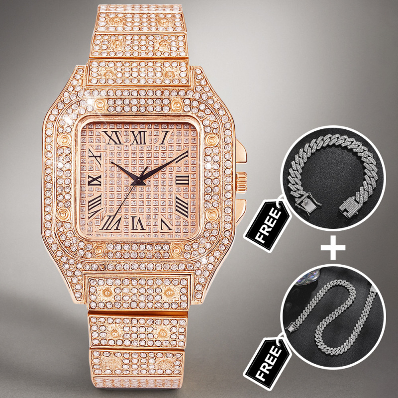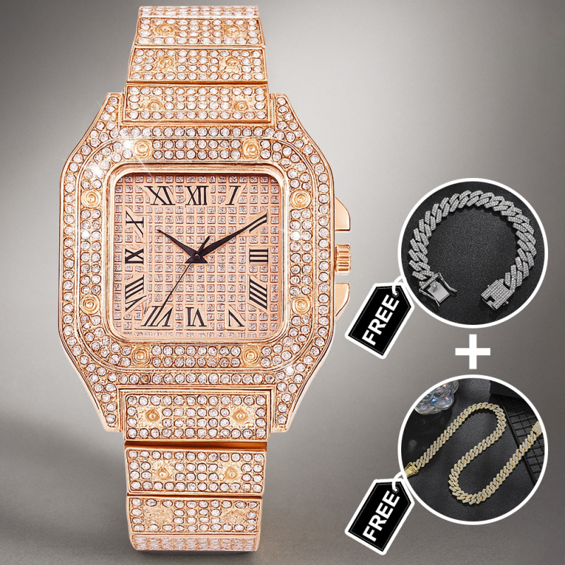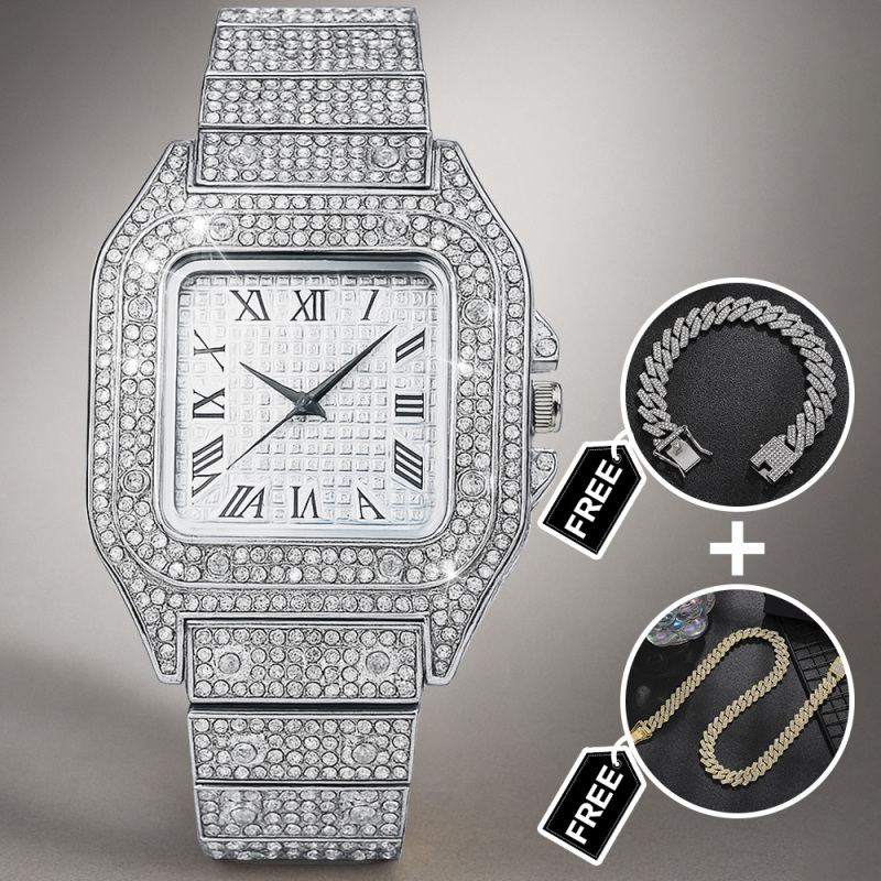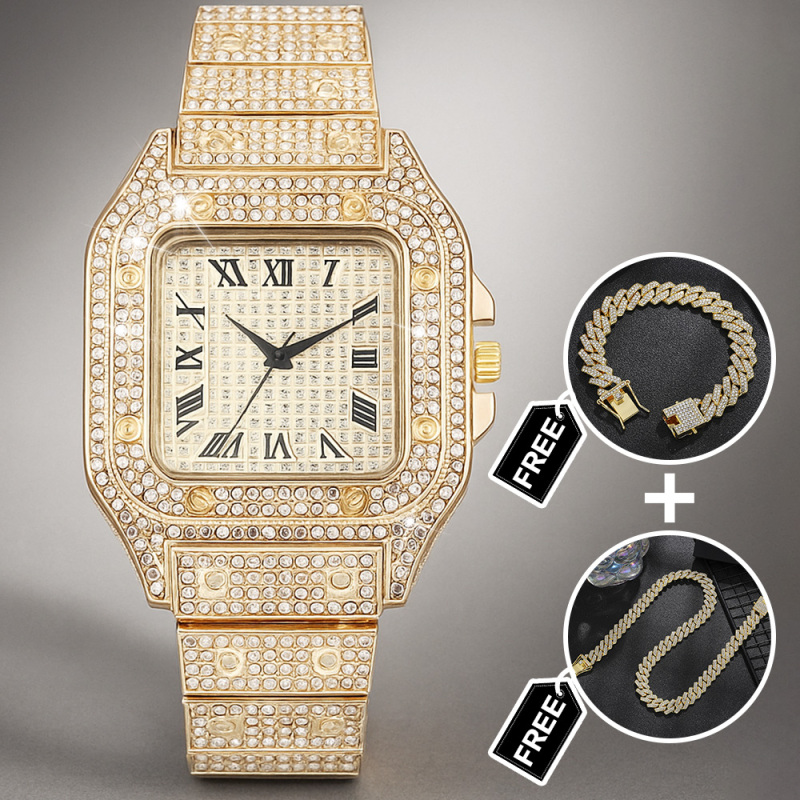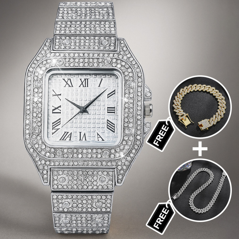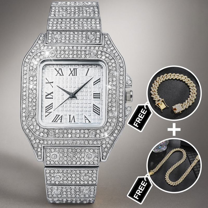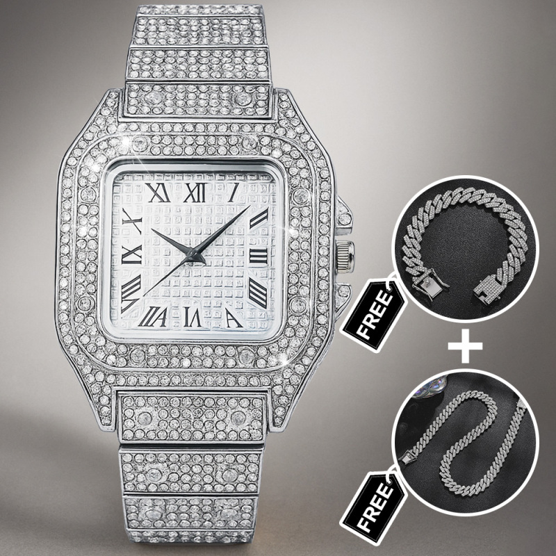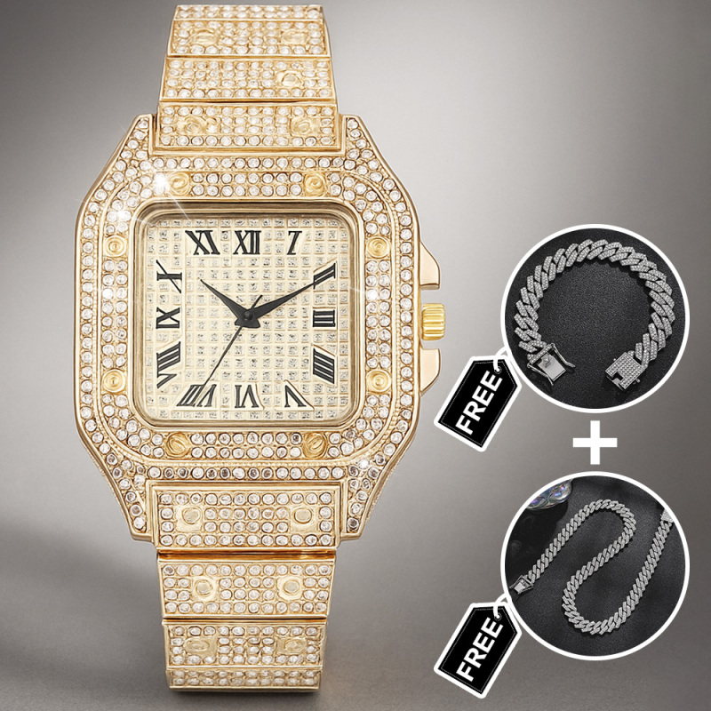 Elevate his style with our Iced Out Watch Rhinestone Set, a dazzling three-piece accessories suite designed to make a bold impression. This eye-catching gift set includes a luxe rhinestone-encrusted watch, a matching bracelet, and a chic necklace, all crafted to shine from every angle. Perfect for birthdays, anniversaries, weddings, or any special occasion, this set adds a touch of glamour and modern flair to any outfit. Durable construction, secure clasps, and a comfortable fit ensure all-day wearability. Give him a standout gift that pairs sophistication with a hint of bling-the Iced Out Watch Set is ready to dazzle.
