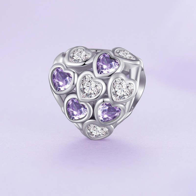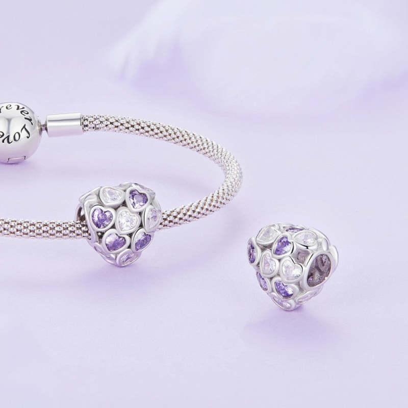 Infinite Love Purple And White Zircon Charm Silver