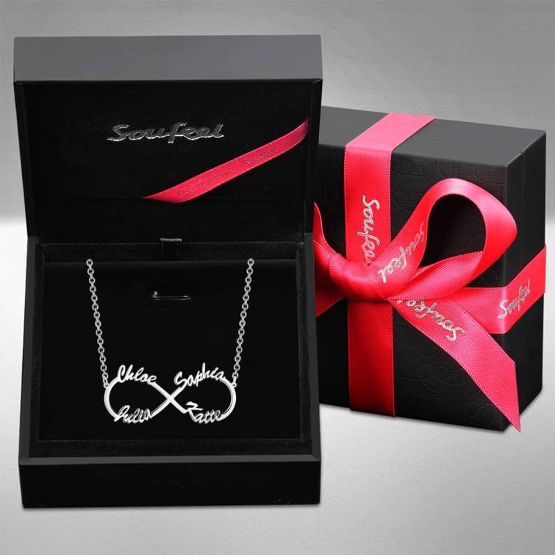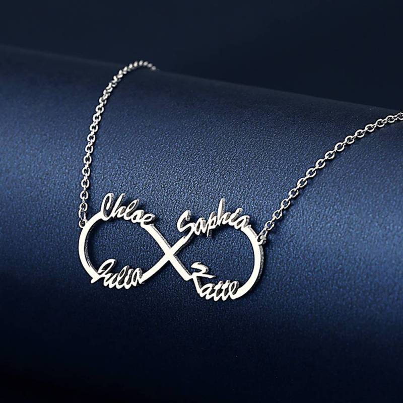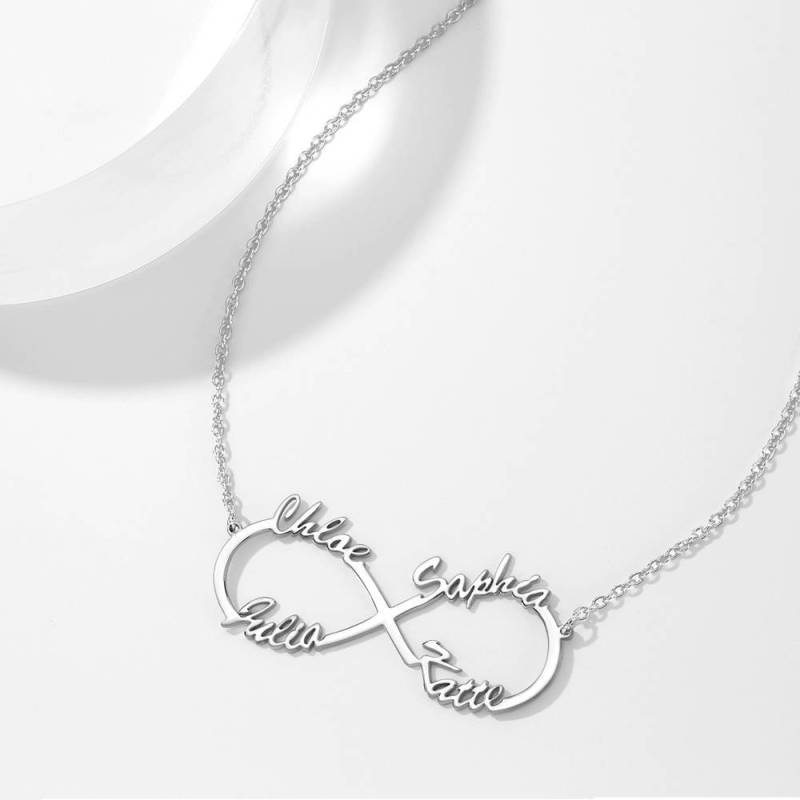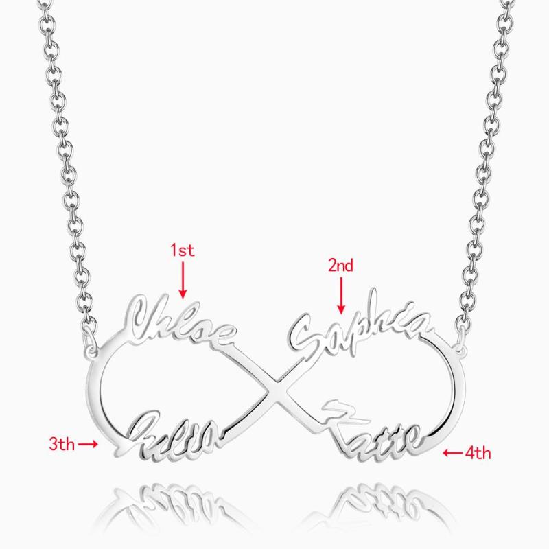 Infinity Four Name Necklace Silver