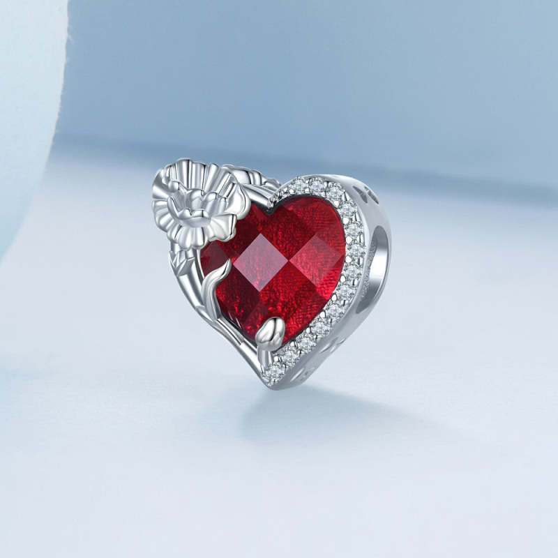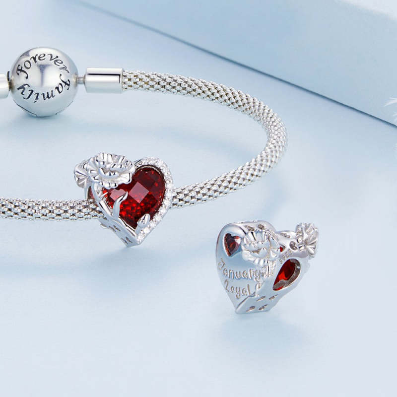 January Birthstone Red Charm Silver