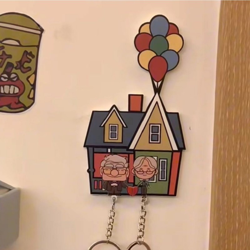 Perfectly capturing the heartwarming essence of the movie, this key holder features a beautifully crafted wooden house, lifted by a bouquet of vibrant, multicolored balloons. Below them, two key rings dangle, providing a practical and sentimental way to keep your keys organized. This delightful piece adds a touch of whimsy and nostalgia to any home decor, making it a perfect gift for fans and loved ones.