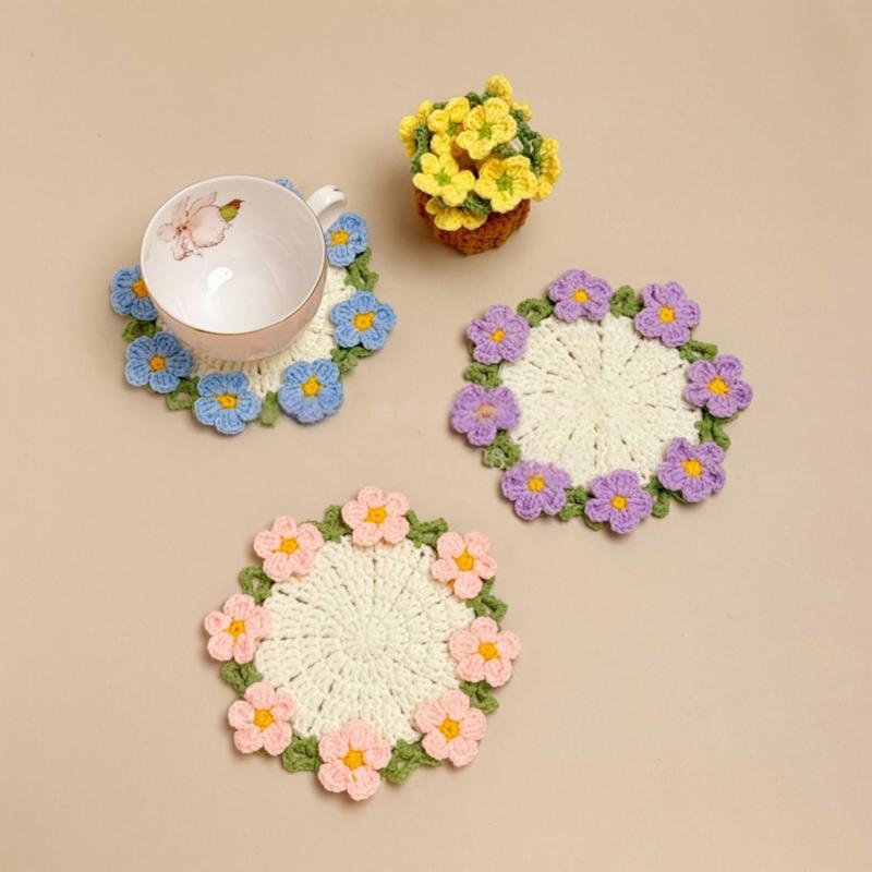 Introducing our Knitted Flower Coasters, beautifully crafted from high-quality yarn. These finished hand-woven coasters feature intricate flower designs, making them not just functional but also a delightful decoration for your home. Each piece is meticulously made, adding a touch of elegance to any table setting. Perfect as a thoughtful gift for special occasions, whether for Mother's Day, a birthday, or just to show appreciation to your girlfriend. These charming coasters combine practicality with a personal touch, bringing warmth and love into any space.