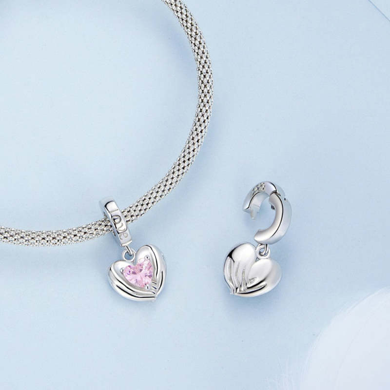 Love and Protection Pink Heart Dangle Charm Silver