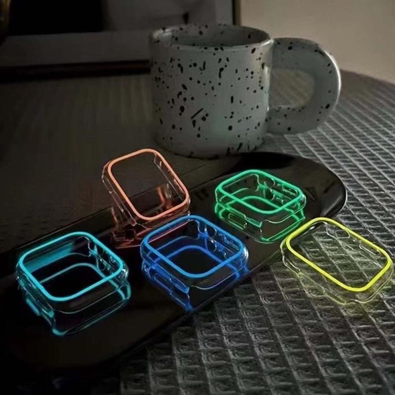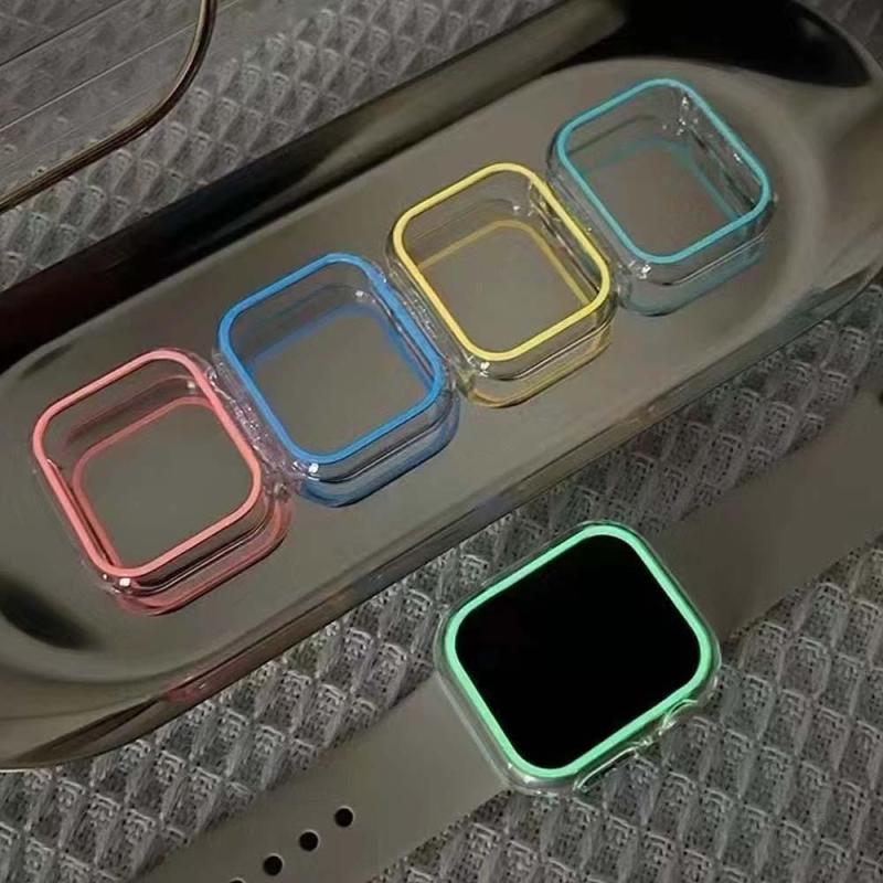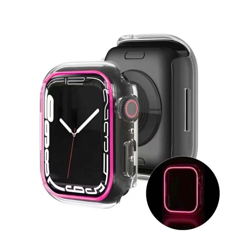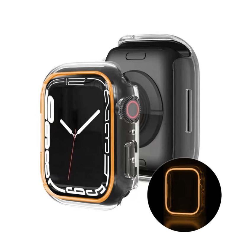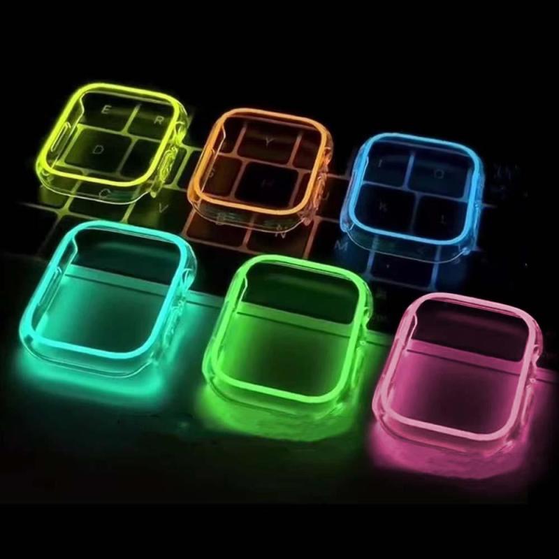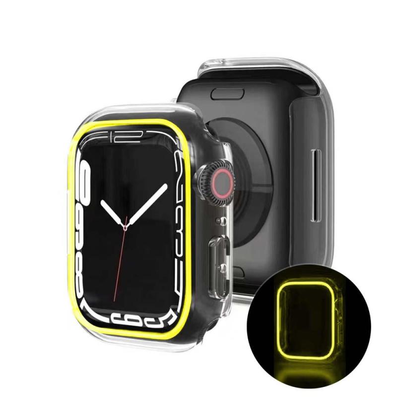 The luminous case for Apple watch, This Case will Glow your watch at Night, Case Frame for Apple Watch, high-quality PC material, It's good for preventing your watch from breaking and scratching. Sizes for selection: 38MM 40MM 41MM 42MM 44MM 45MM 49MM. Compatible with Series 4 5 6 7. Protect your Apple watch against scratches while staying clear for a clean and smooth display. This case does not cover the screen of the Apple Watch. It leaves it free to easily manipulate your watch.