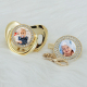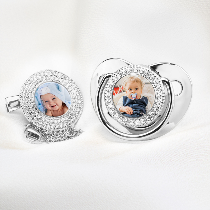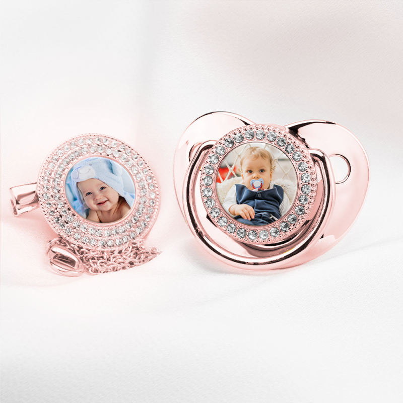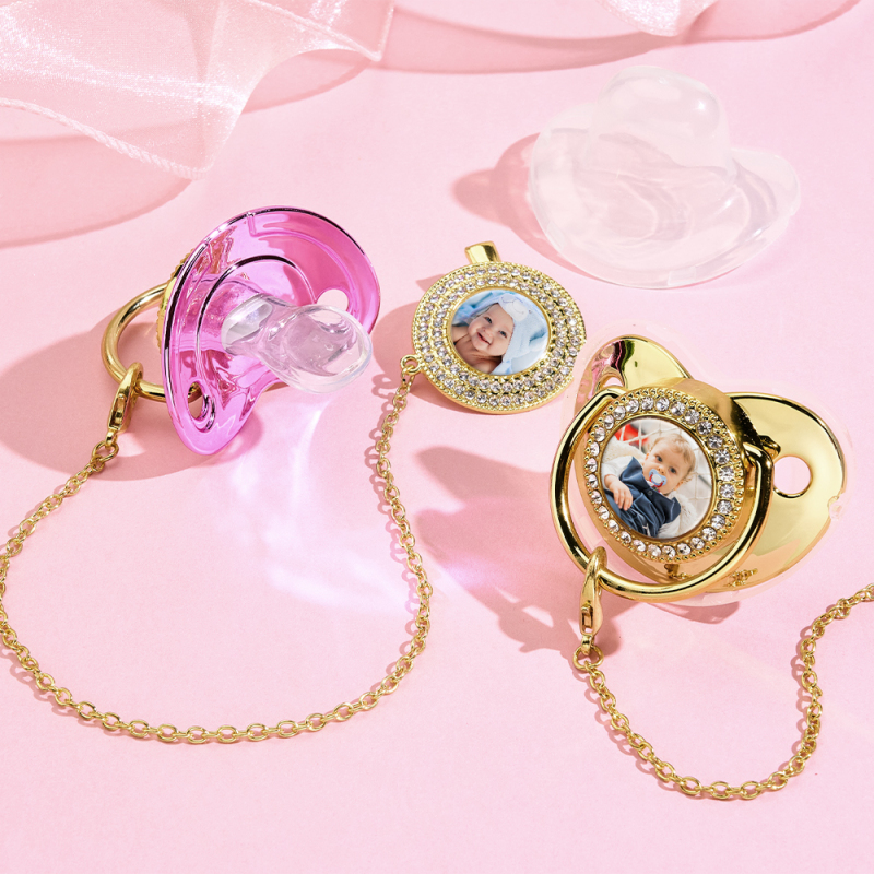Looking for a unique and luxurious baby gift? This personalized pacifier set is a one-of-a-kind keepsake that parents will treasure forever. Whether for a newborn celebration, first birthday, or christening, this elegant set makes a perfect present!