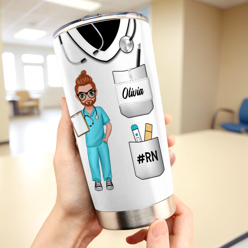 Male Nurse Custom Text and Accessories Tumbler Cup with Straw Medical Gift for Male Nurse