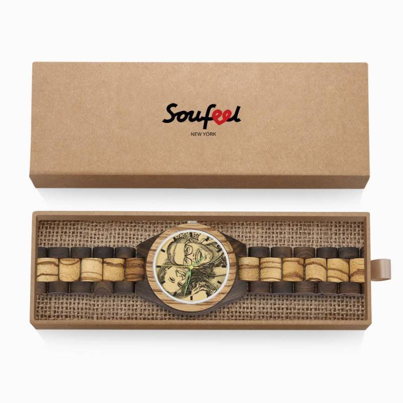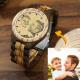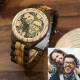 Men's Engraved Wooden Photo Watch Wooden Strap 45mm
