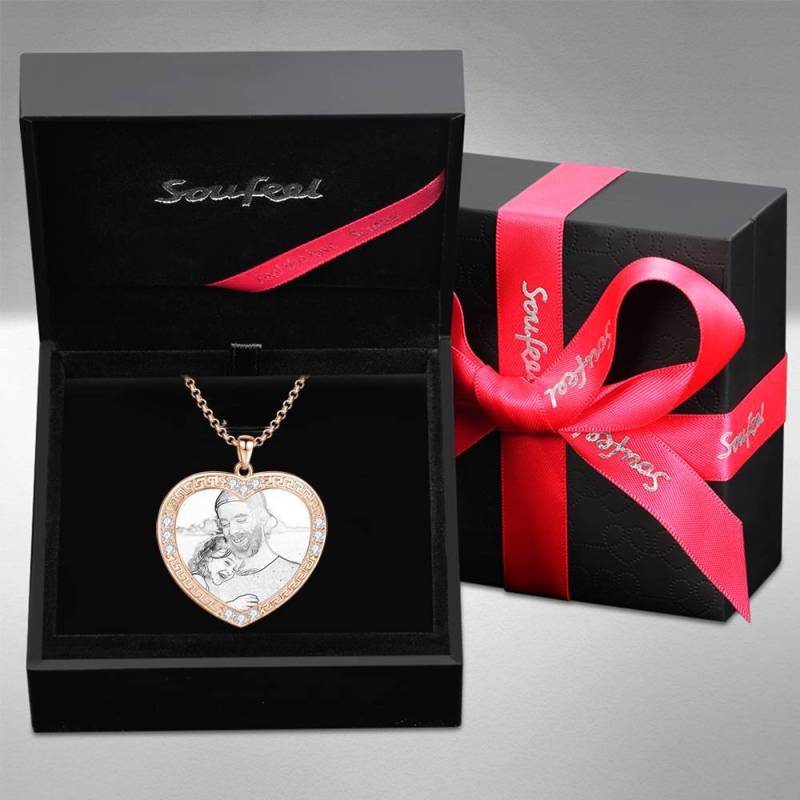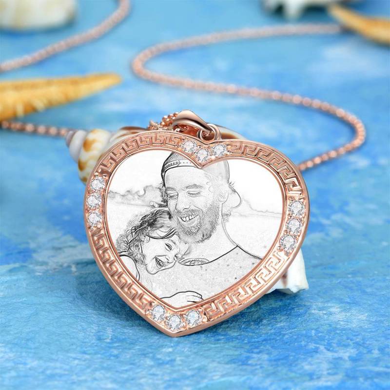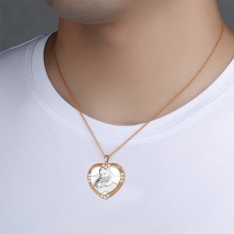 Personalised Soufeel Stainless Steel Tag Photo Pendant is the perfect way to keep your greatest memories close to the soul. This custom photo necklace is made of sturdy, stainless steel that will never tarnish so you can hold it close for many years to come. The perfect thoughtful, fun, and unique gift for any occasion! Soufeel has a ton of customized jewelry options that are reasonably priced and make for great gifts for all sorts of occasions like birthdays, holidays, anniversaries, Father's Day. Men's Personalised Photo Engraved Necklace, Rhinestone Crystal Heart Shape Photo Necklace Rose Gold Plated - Sketch.