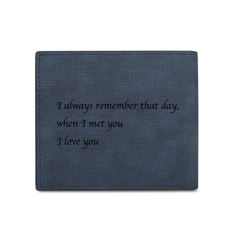 Men's Bifold Custom Inscription Photo Engraved Wallet - Blue Leather