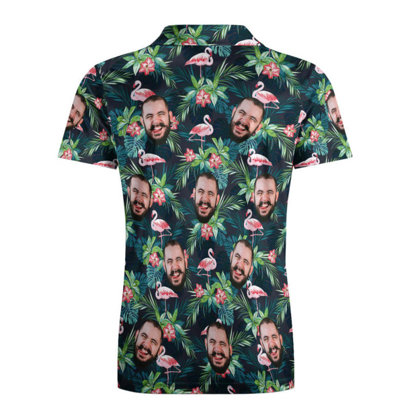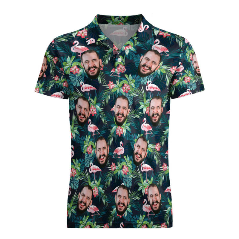 Men's Custom Face POLO Shirt Personalized Golf Shirts For Him Flamingo Flower