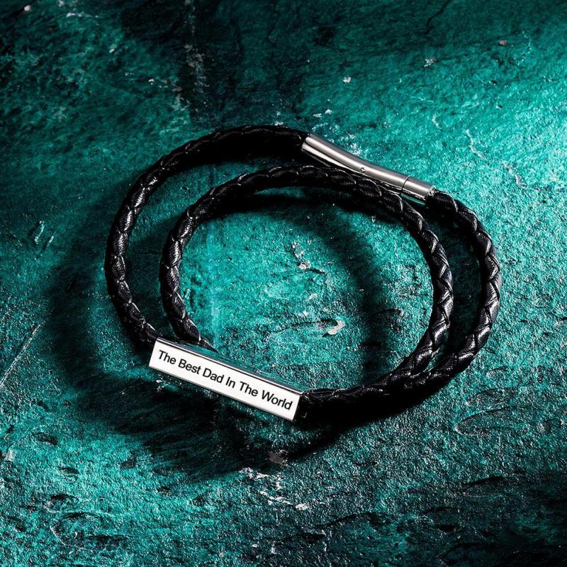 Men's Leather Bracelet Leather Wrap Bracelet Name Bracelet Gift for Him