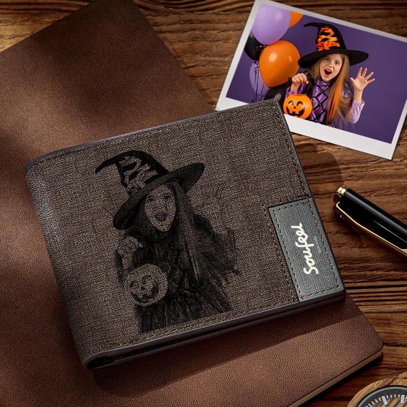 Mens Wallet, Personalized Wallet, Photo Wallet with Engraving Gifts for Halloween