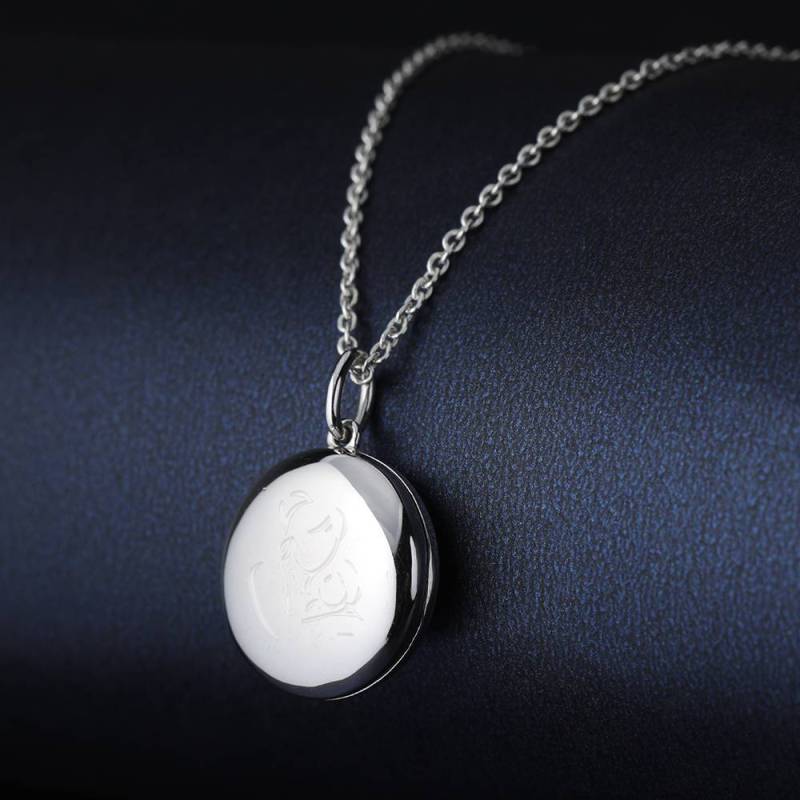 Mother's Necklace - Round Engraved Photo Necklace Silver