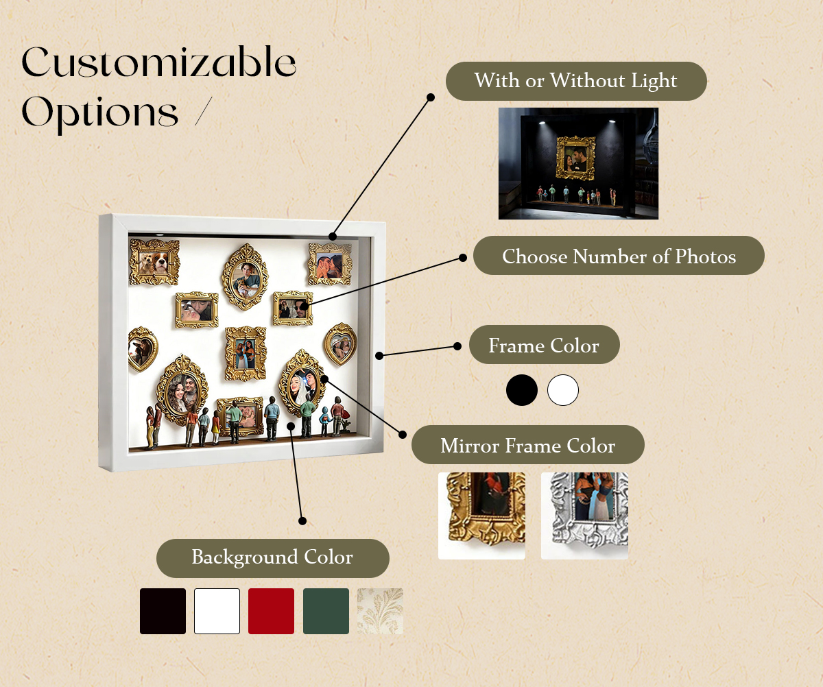 Each shadow box is carefully arranged with symbolic elements that reflect family, and personal history. Whether you’re gifting it or displaying it in your own home, this piece tells a powerful story-your story.