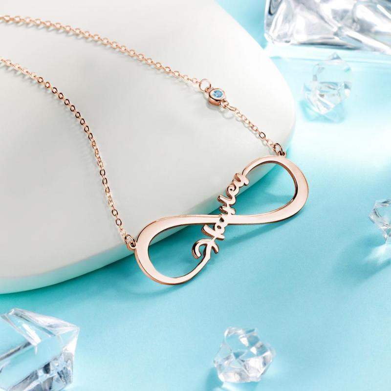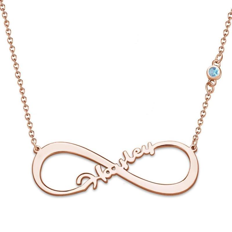 Name Necklace with Custom Birthstone Infinity Necklace Unique Gifts Rose Gold Plated