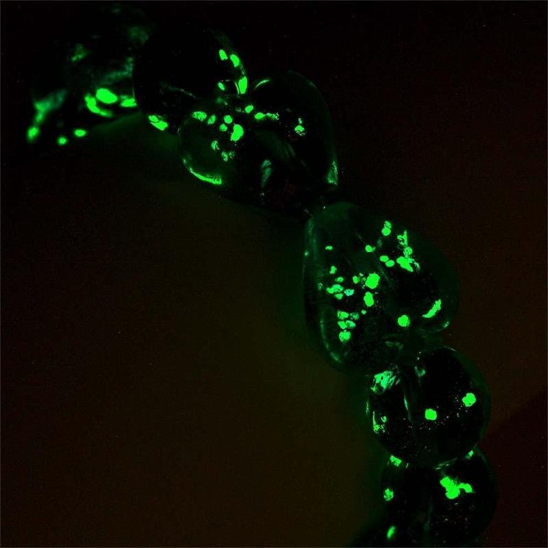Navy Blue Heart-to-Heart Firefly Glass Stretch Beaded Bracelet Glow in the Dark Luminous Bracelet