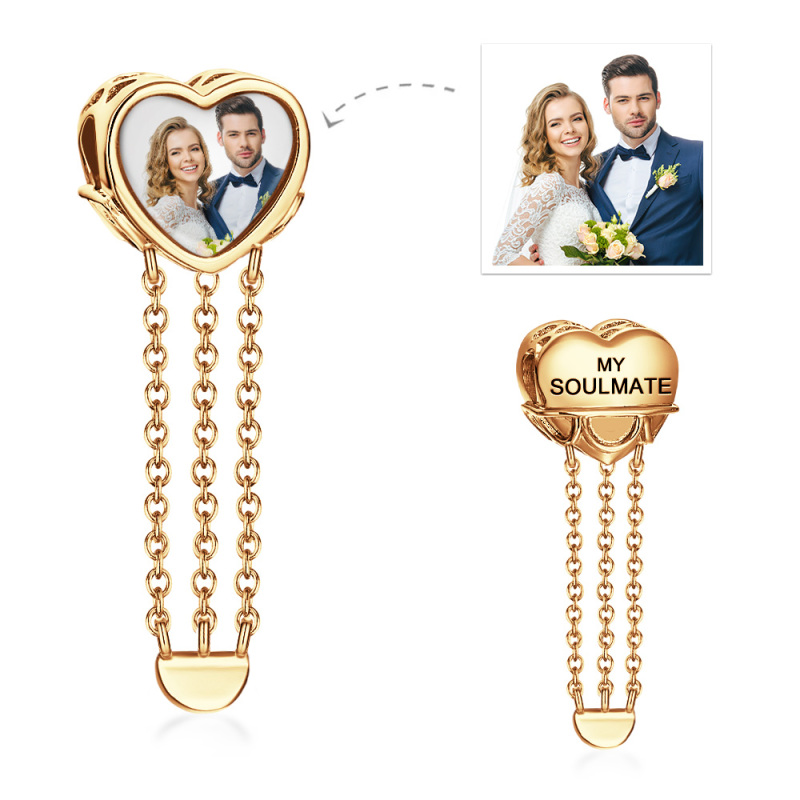 Never be Apart Heart Personalized Photo Charm Fit All Major Brands of Bracelets Necklaces
