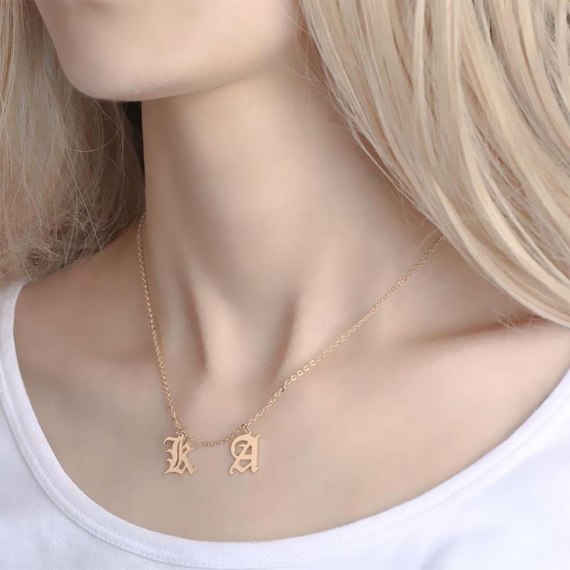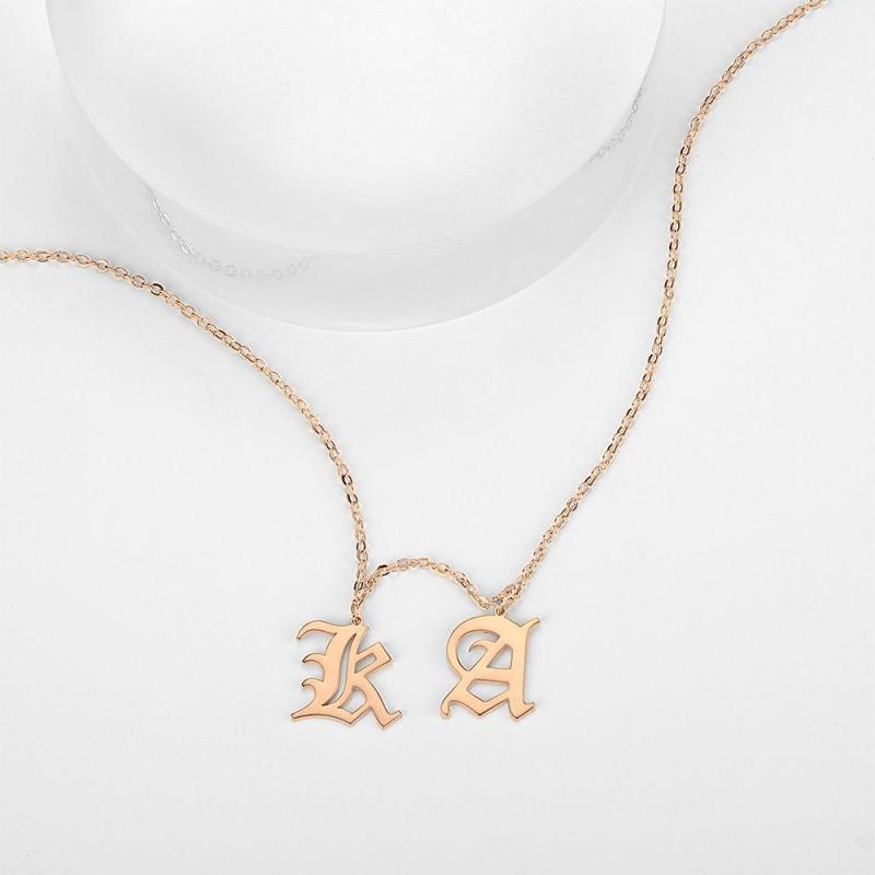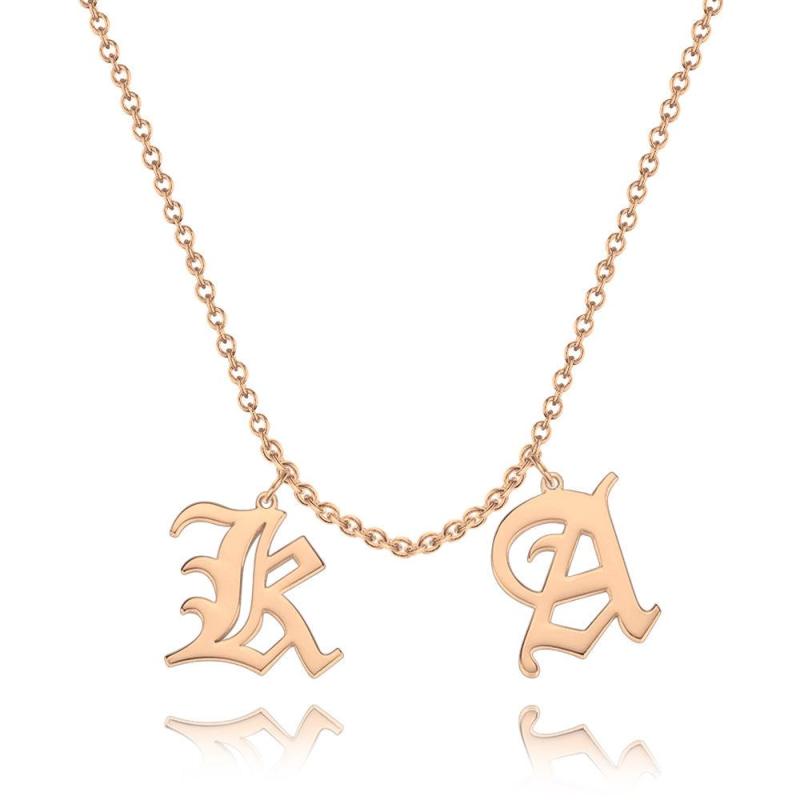 Name necklaces are a must for every fashionable people. They have a fun and Personalised feel to them. In addition, Soufeel name necklaces are versatile enough for everyday wear. Slip them on alone or layer them up for a bolder look. Depending on which style you get, you can customize Soufeel pieces with initials, one name, or two names. There are Personalised infinity necklaces, retro nameplate necklaces, and modern bar necklaces. In addition to getting your own name, other options would be to get the name of a boyfriend, BFF, pet, parent, or even a favorite word that you use for inspiration. Name Jewelry makes the perfect gift for any occasion. The name jewelry will be one of your favorite jewelry. Also, the custom name jewelry a beautiful, Personalised gift for your loved one, family, friends or yourself. Soufeel has a ton of customized jewelry options that are reasonably priced and make for great gifts for all sorts of occasions like birthdays, holidays, anniversaries. Old English Name Necklace, Custom Two Letter Necklace Rose Gold Plated.