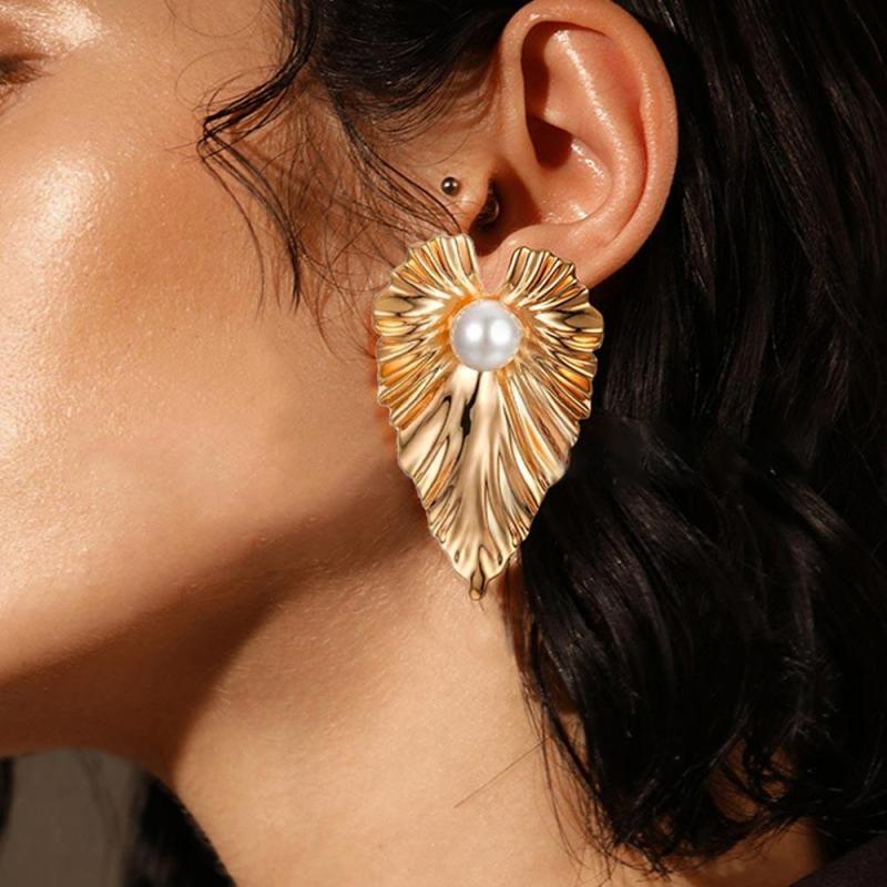 Pearl Earrings Heart Shape Gold Plated Cooper