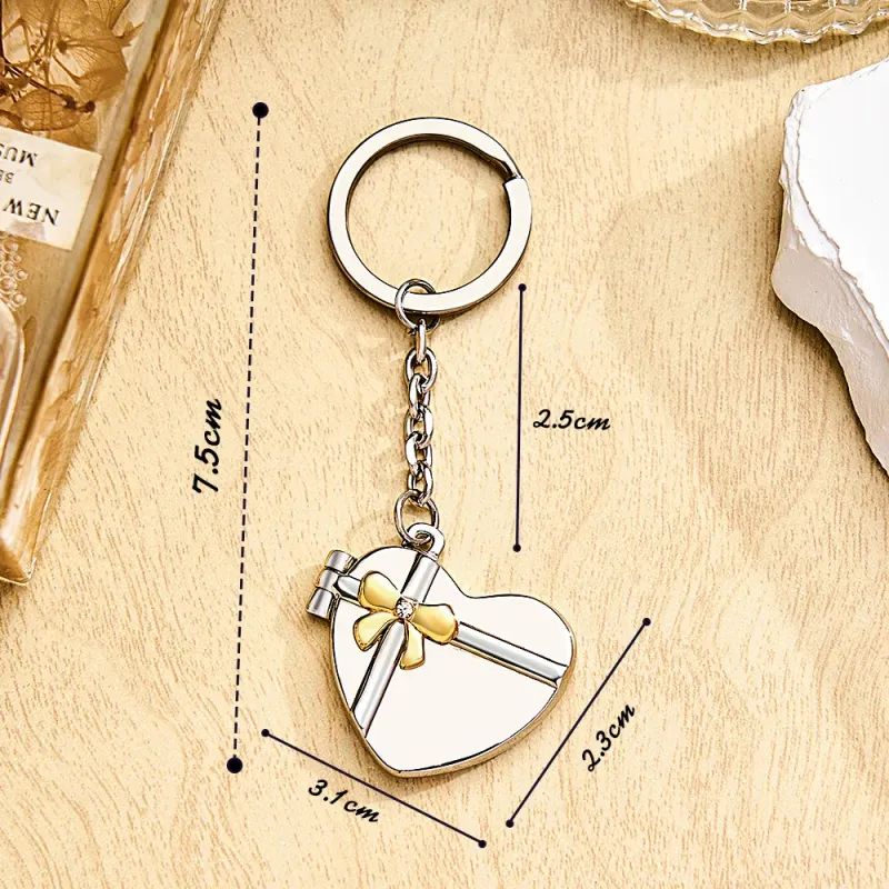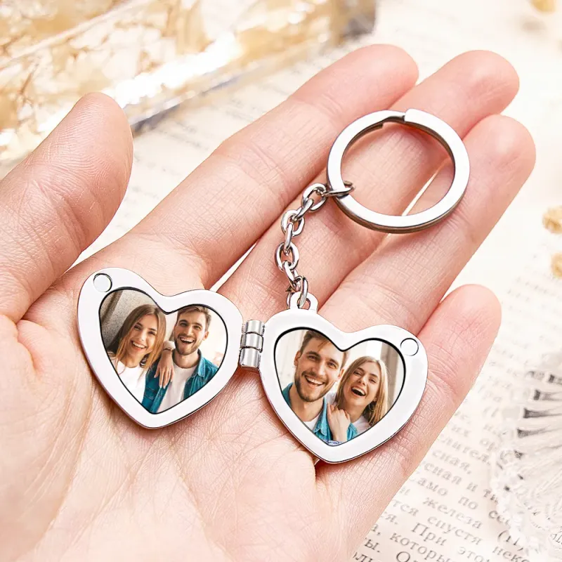 This heart-shaped keychain can be customized with up to two photos, or you can choose one photo along with a short phrase or date. It makes a thoughtful gift for your loved ones or a special keepsake for yourself.
