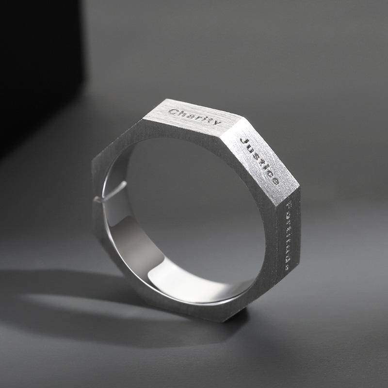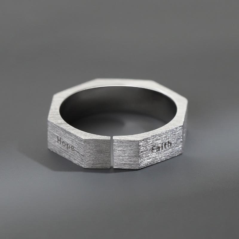 This ring is printed with seven characters, which can be used to remind and inspire yourself. Faith charity Prudence justice fortitude hope and temperance. The opening of the ring can be adjusted, fashionable, and personalized. It is suitable for male friends or when going out to parties.