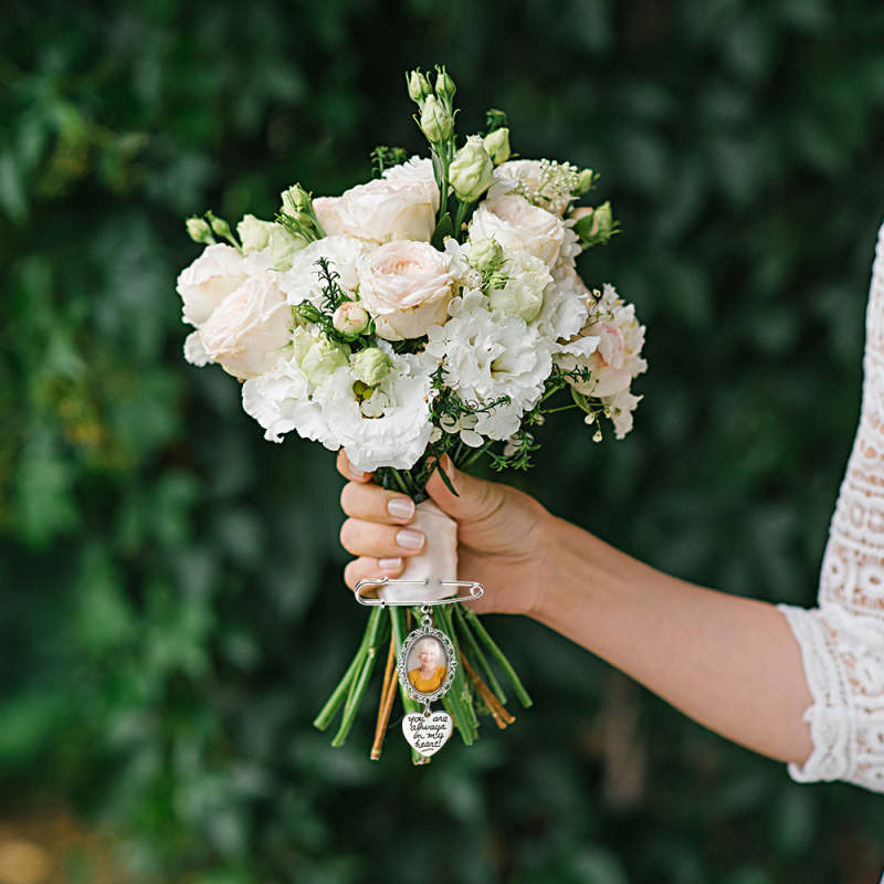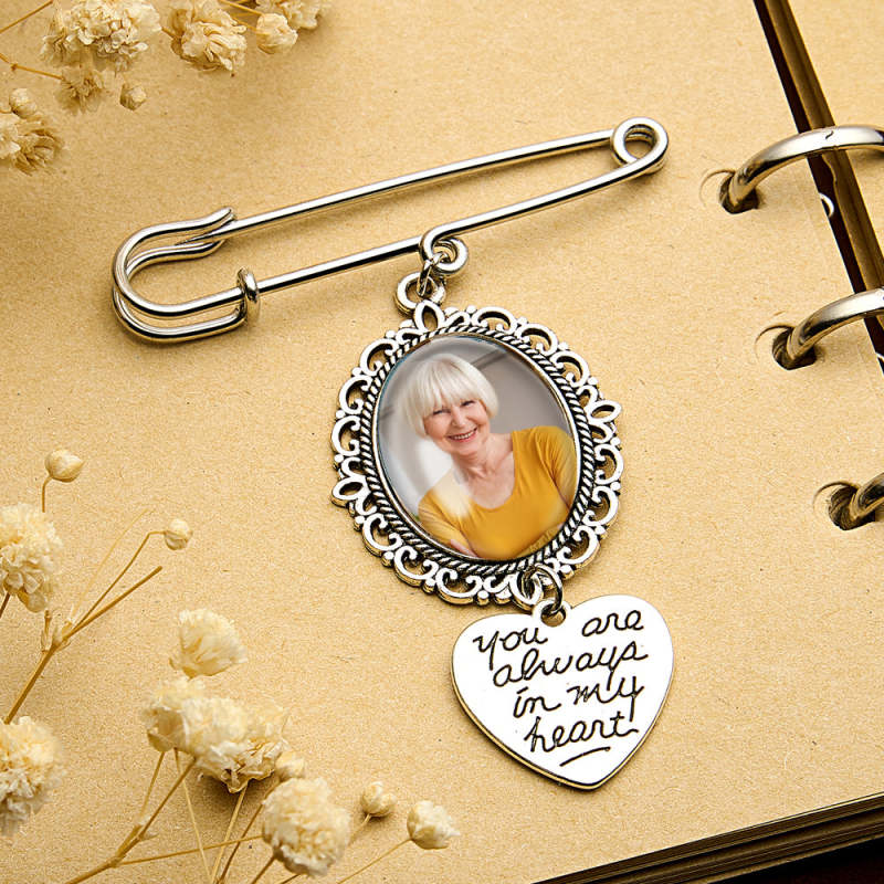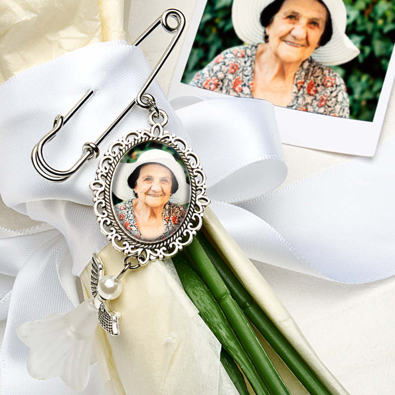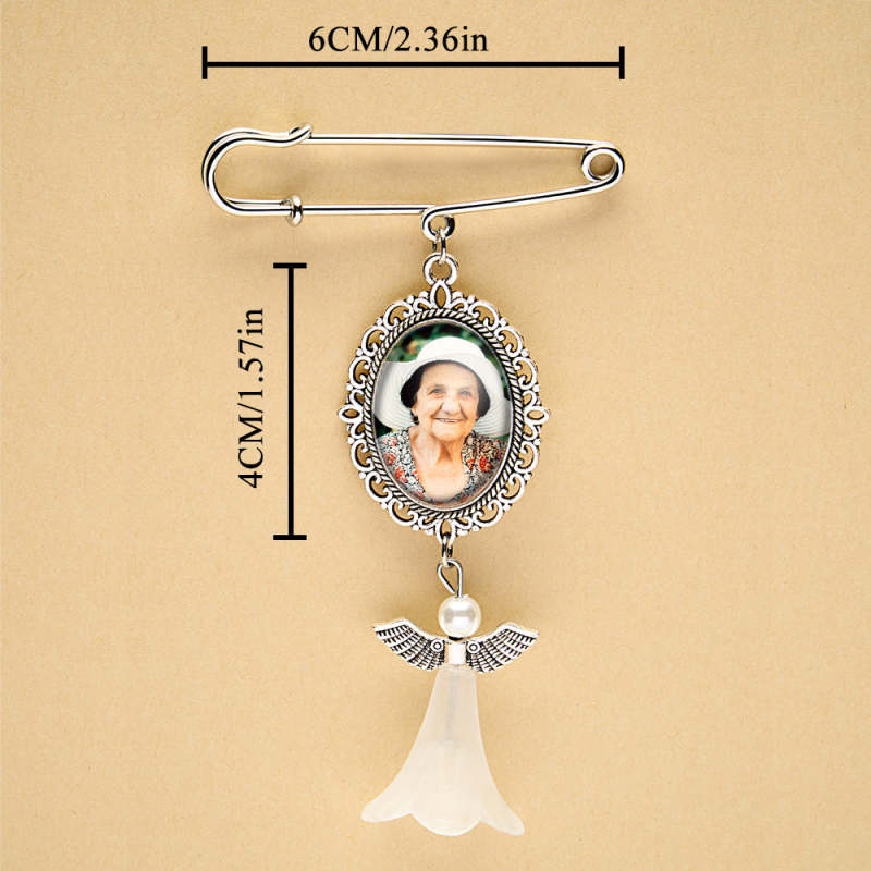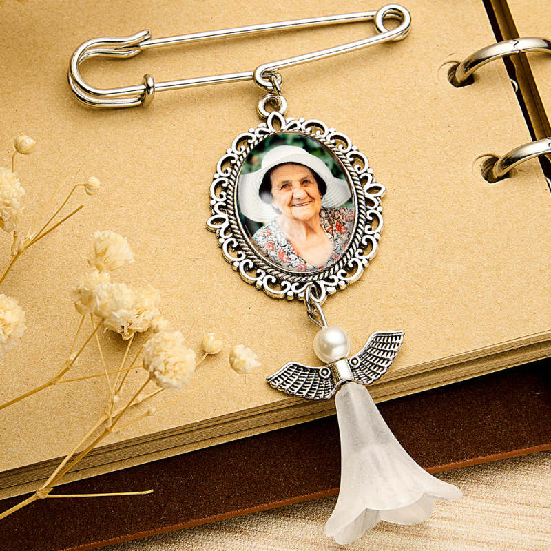 This Personalized Angel Wings Pin Brooch is the perfect way to add a special touch to a wedding bouquet or to serve as a memorial gift for a bride. It can be personalized with a photo, making it a sentimental and unique accessory. A thoughtful and heartfelt addition to any wedding or special occasion.