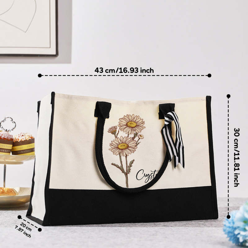 This Personalized Birth Flower Canvas Tote Bag is the perfect gift for her. The large capacity allows for easy transport of essentials, while the personalized birth flower and canvas material add a touch of custom charm. It's the perfect combination of practicality and sentimentality.