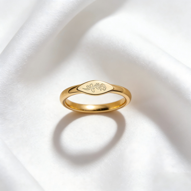 Personalized Birth Flower Ring — Custom Dainty Jewelry Gift for Her