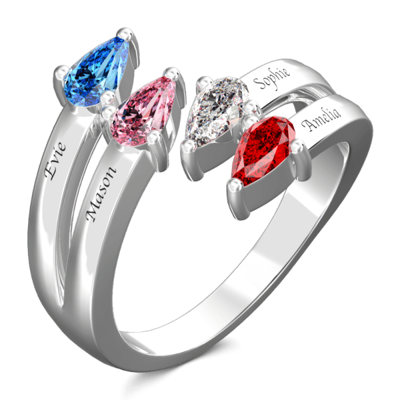 Personalized Birthstone Promise Ring with Engraving Silver