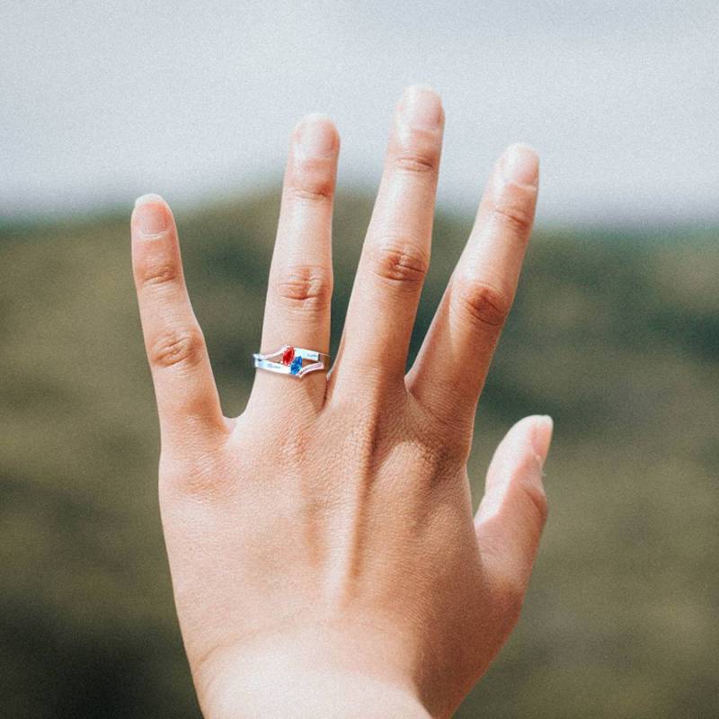 Personalized Birthstone Promise Ring with Engraving Silver