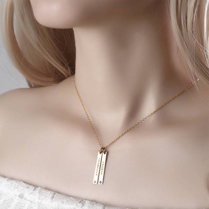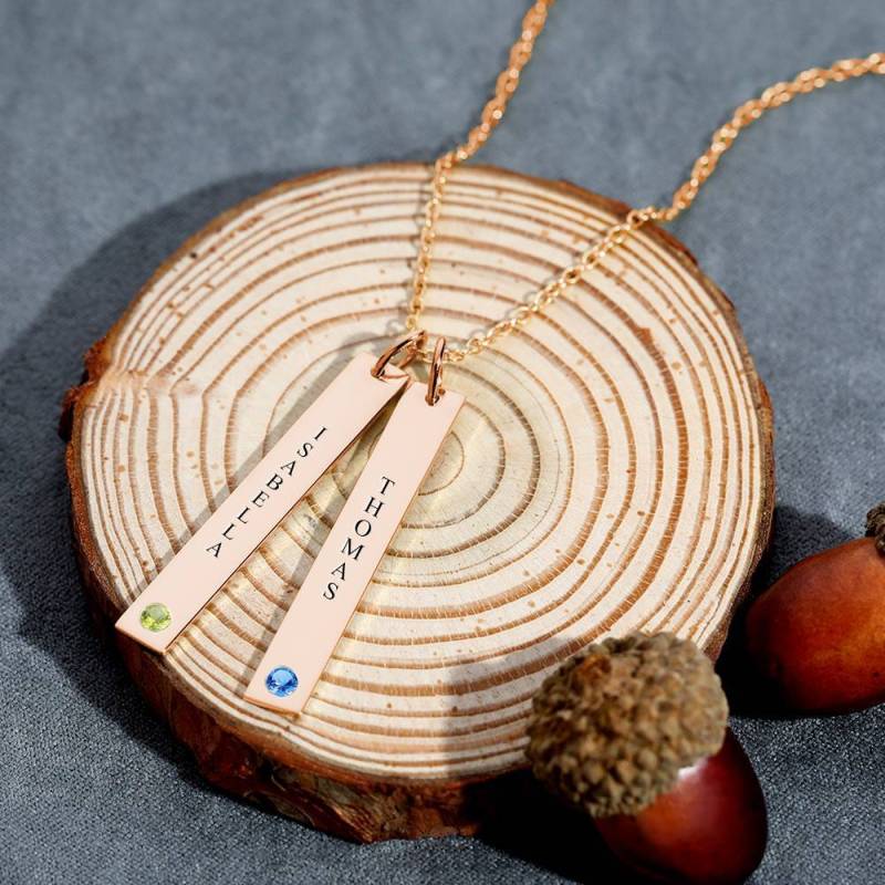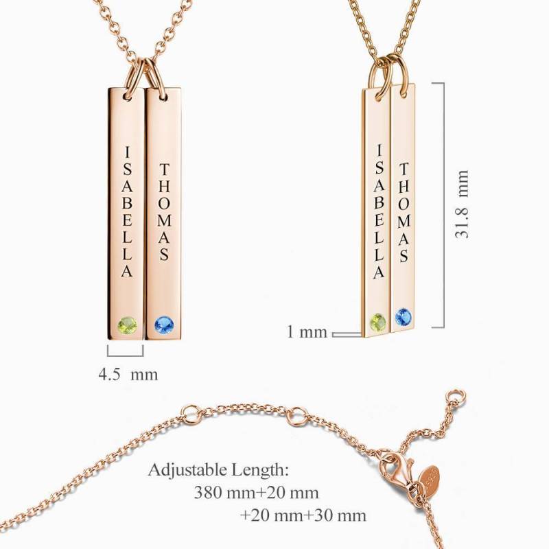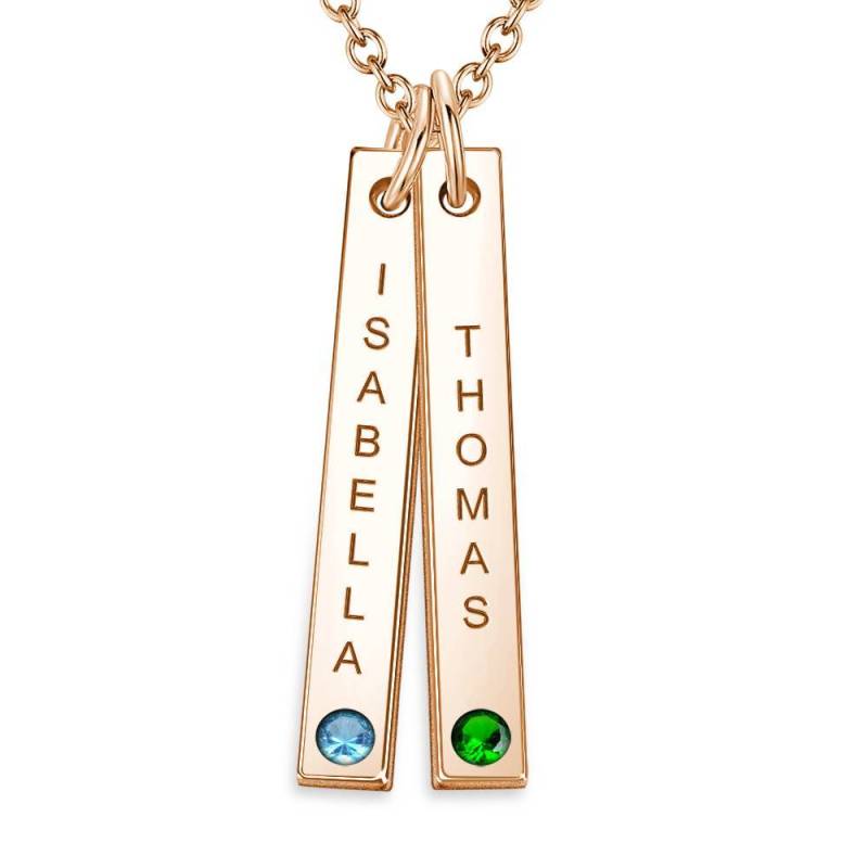 Personalized Birthstone Vertical Two Bar Necklace with Engraving Rose Gold Plated Silver
