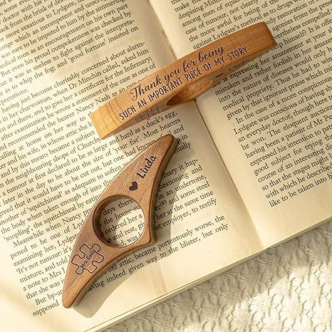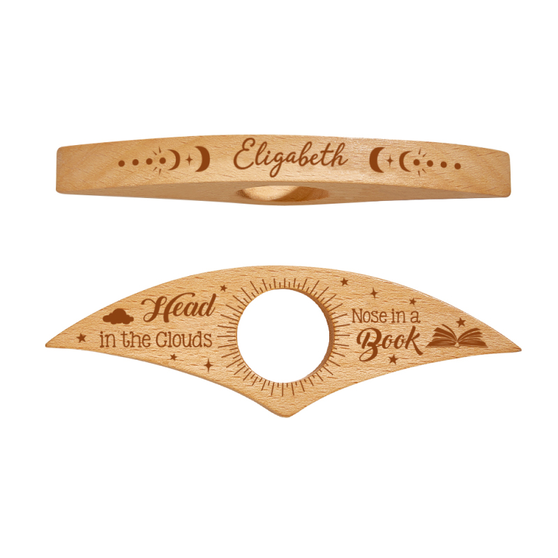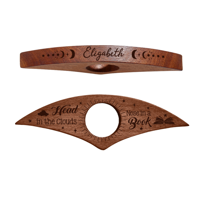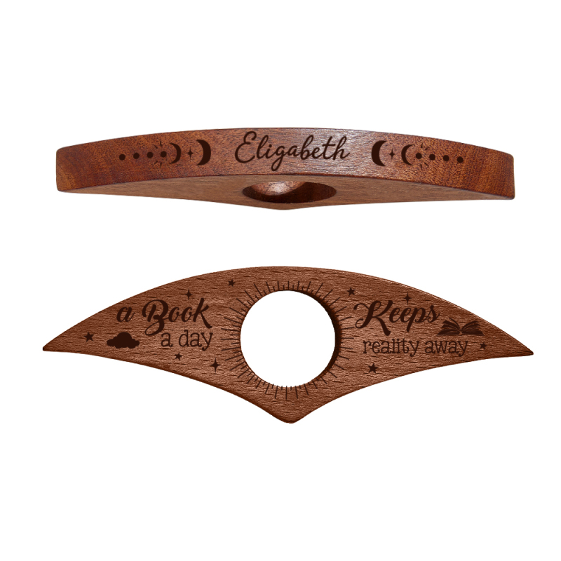 Features: + Ergonomic Thumb Hole: Designed for a secure and comfortable grip, making one-handed reading effortless. + Compact & Lightweight: Easy to carry fits snugly in your hand or pocket, ideal for travel or daily reading. + Natural Finish: Each piece showcases the unique wood grain, giving it a rustic yet elegant aesthetic, perfect as a gift for book lovers.