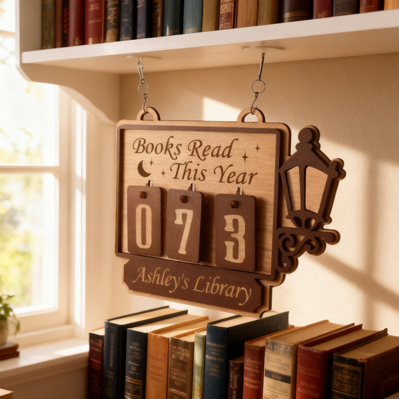 Handcrafted from quality wood, this customizable sign lets you track each book you finish while adding a warm literary charm to your bookshelf, book nook, or reading space.
