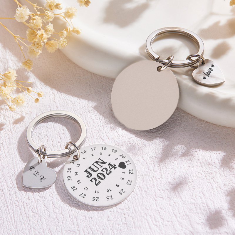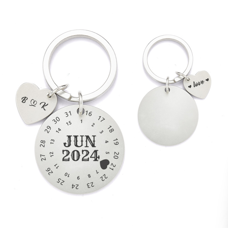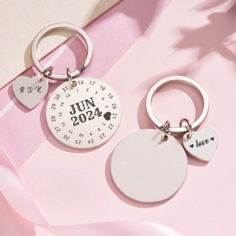 These Calendar Keychain are wonderful way to remember the special date of a anniversary, birthday, wedding or even a first date or kiss. They can be personalized on both sides. One side can be engraved with the calendar month you choose with your special day marked. The other side can be engraved with the pictures.