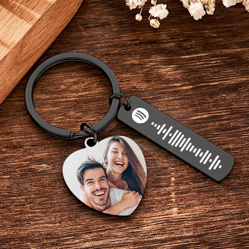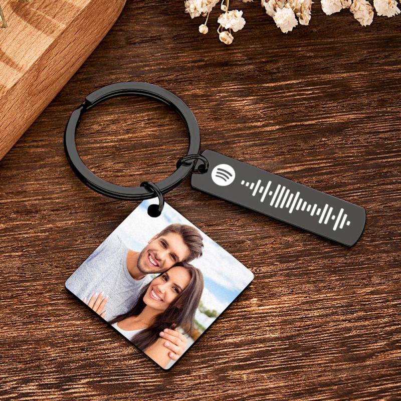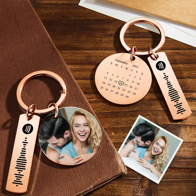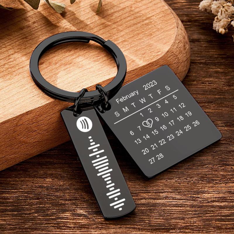 Personalized Calendar Keychain Special Day Significant Photo Heart Square Circle Shape Music Code Metal Keychain Anniversary Gift
