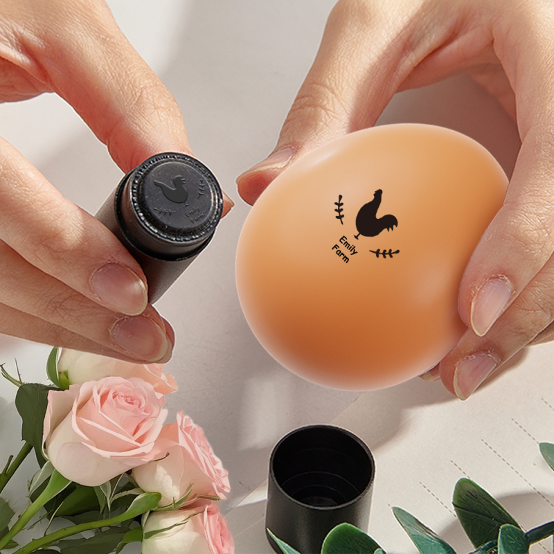 This personalized egg stamp with a charming chicken silhouette adds a special touch to every egg and egg carton. Customize it with your last name or a special message, turning each egg into a unique keepsake. It’s a beautiful way to showcase your farm’s pride and add personality to your fresh eggs.