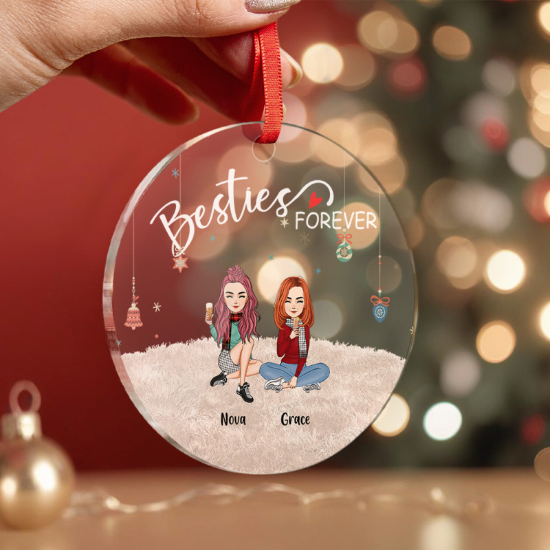 Decorate your home this Christmas season with our Personalized Circle Ornament Besties Forever. This adorable cartoon drawing features little people and is the perfect addition to your holiday decor. It also makes a thoughtful gift for your loved ones. Get your hands on this festive hanging ornament now!