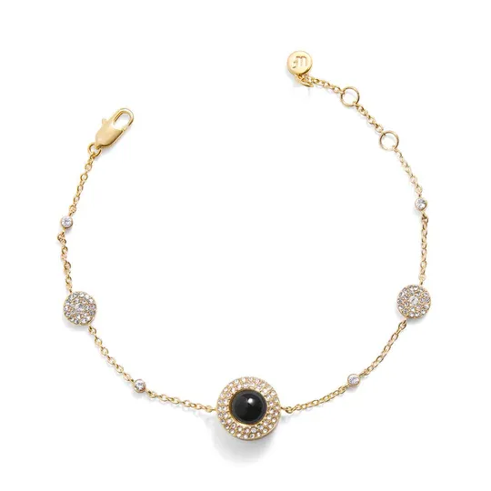• Personalized Pave Circle Photo Station Bracelet – This bracelet is crafted to capture what you hold dear. Every piece is custom-made, meticulously designed, and skillfully handcrafted by artisans.