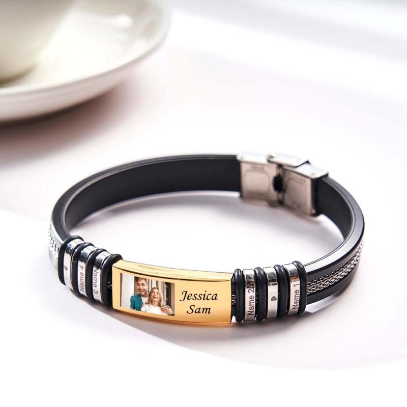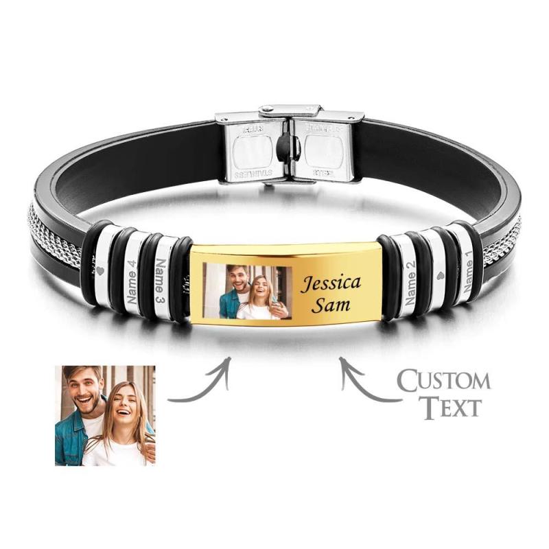 Crafted with precision and sentimental value, our Personalized Color Photo Memory Bracelets are the epitome of heartfelt gestures. Express your affection and create lasting memories with this custom engraved wristband, beautifully showcasing four names of your choice. Available in an array of captivating colors - Silver, Gold, and Black - this men's bracelet doubles up as a timeless birthday or friendship gift. Cherish those special moments and let this bracelet serve as a constant reminder of those cherished bonds.
