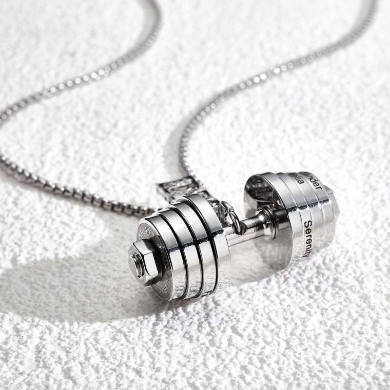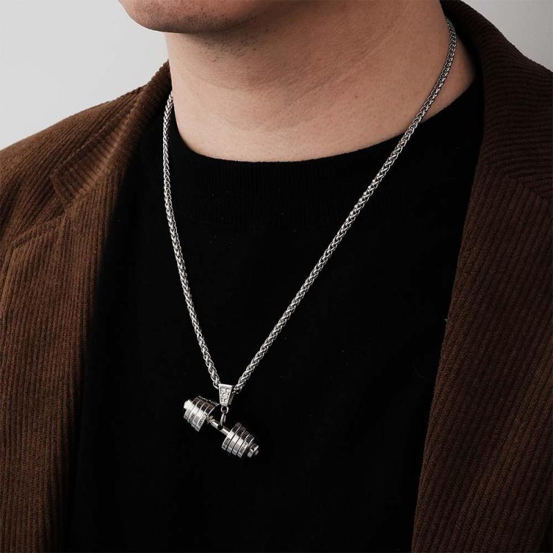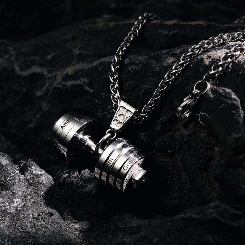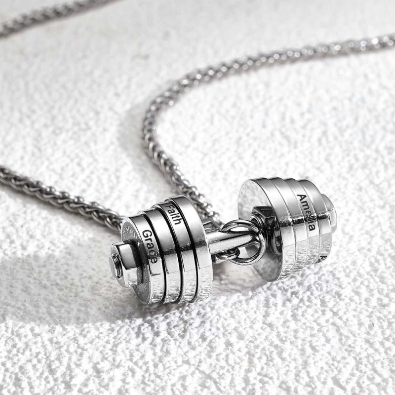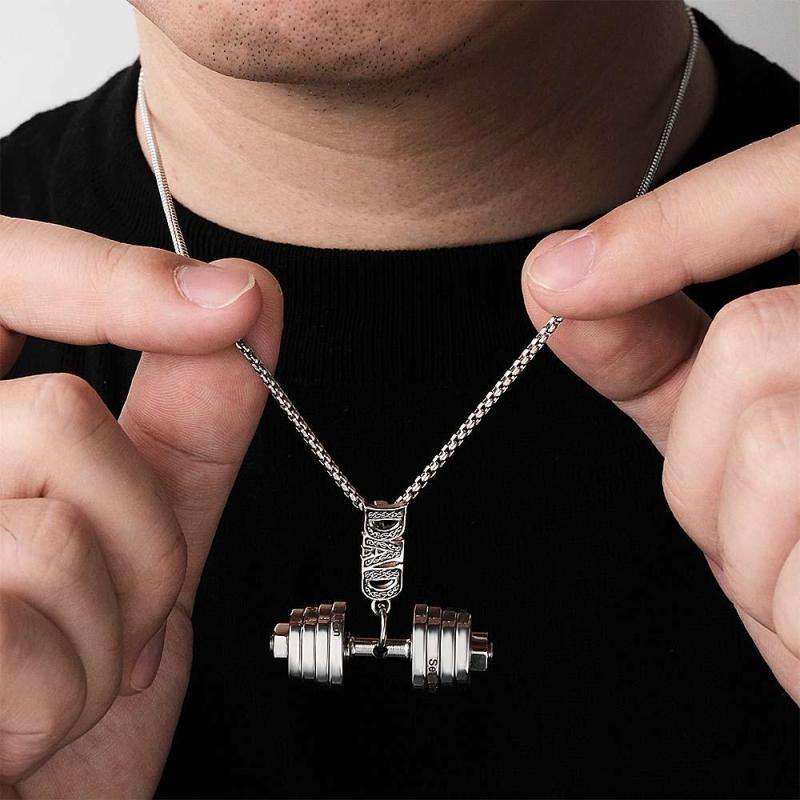 This necklace is specially designed for Father's Day. The theme highlights the dumbbell pendant. Simple text can be customized on the dumbbell piece, such as the father's name or blessings, to add personalization and commemorative meaning.