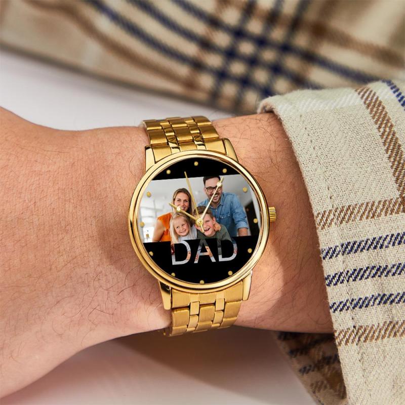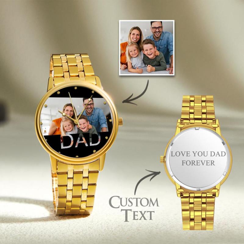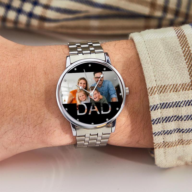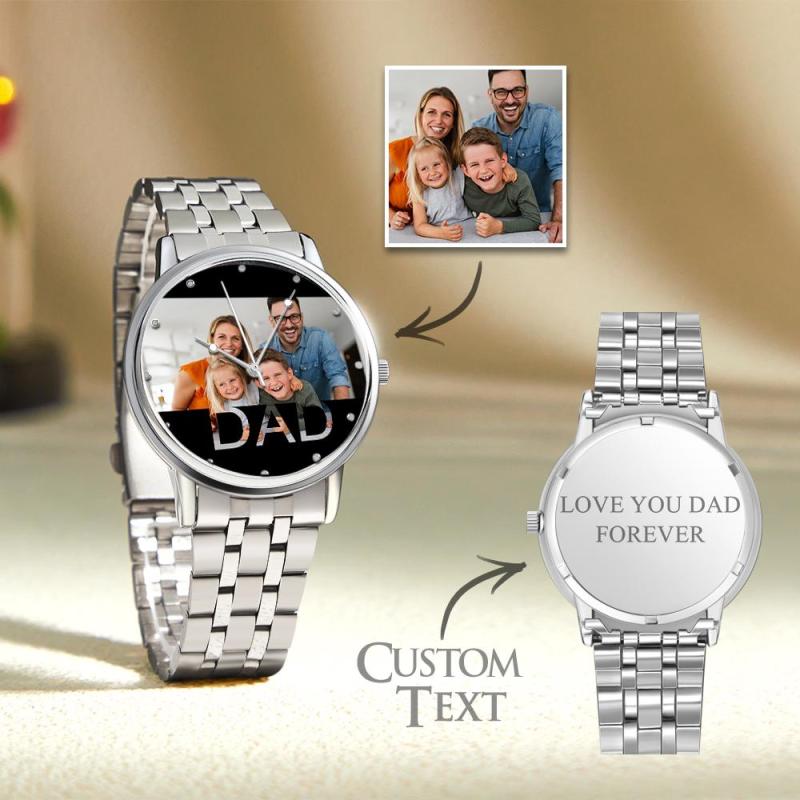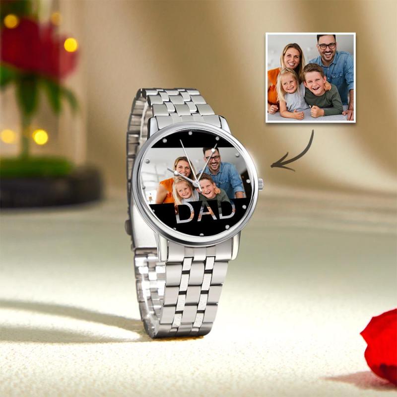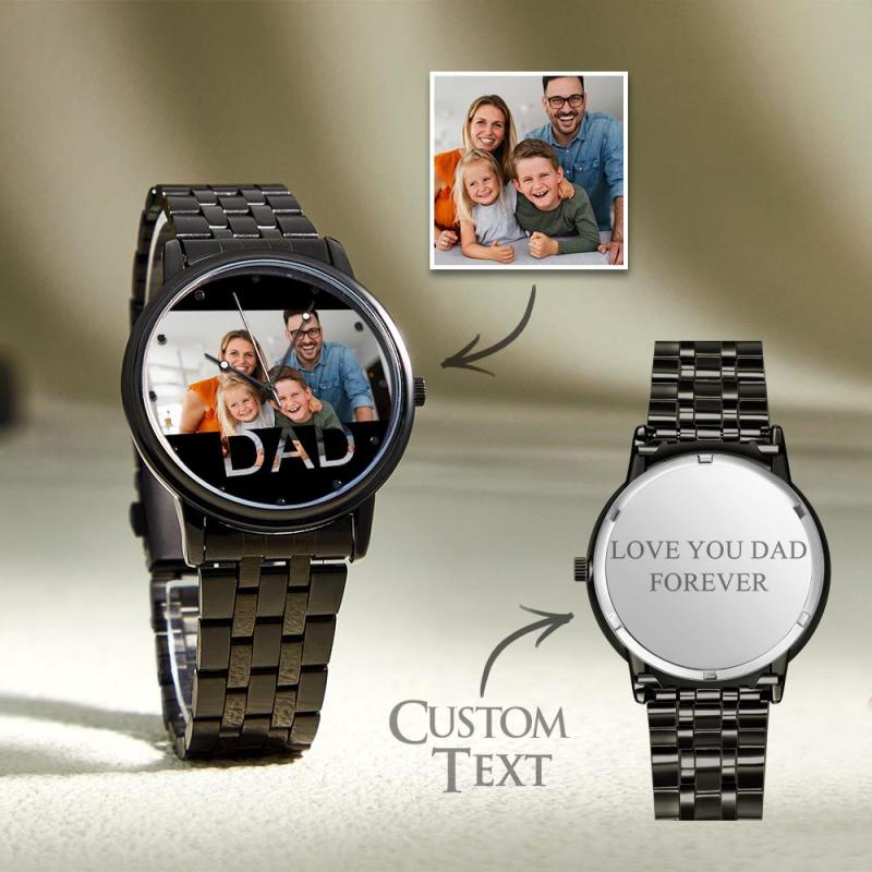 Personalized Engraved Photo Watch Father's Day Gifts Men's Black Alloy Bracelet Photo Watch To Dad