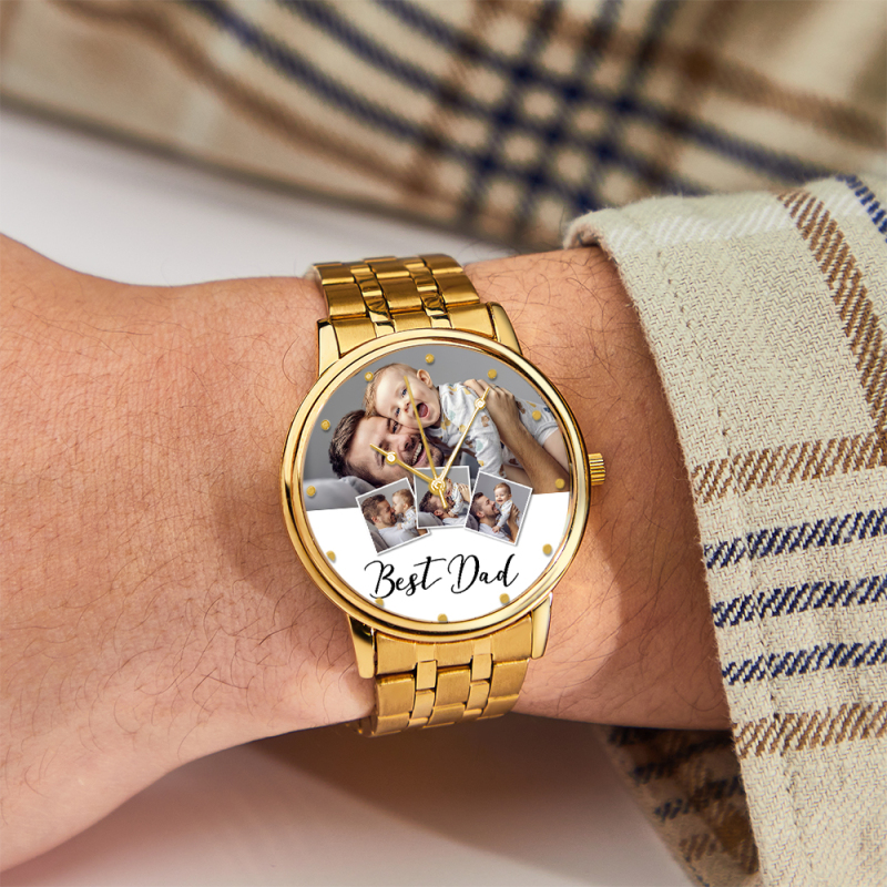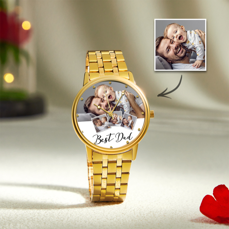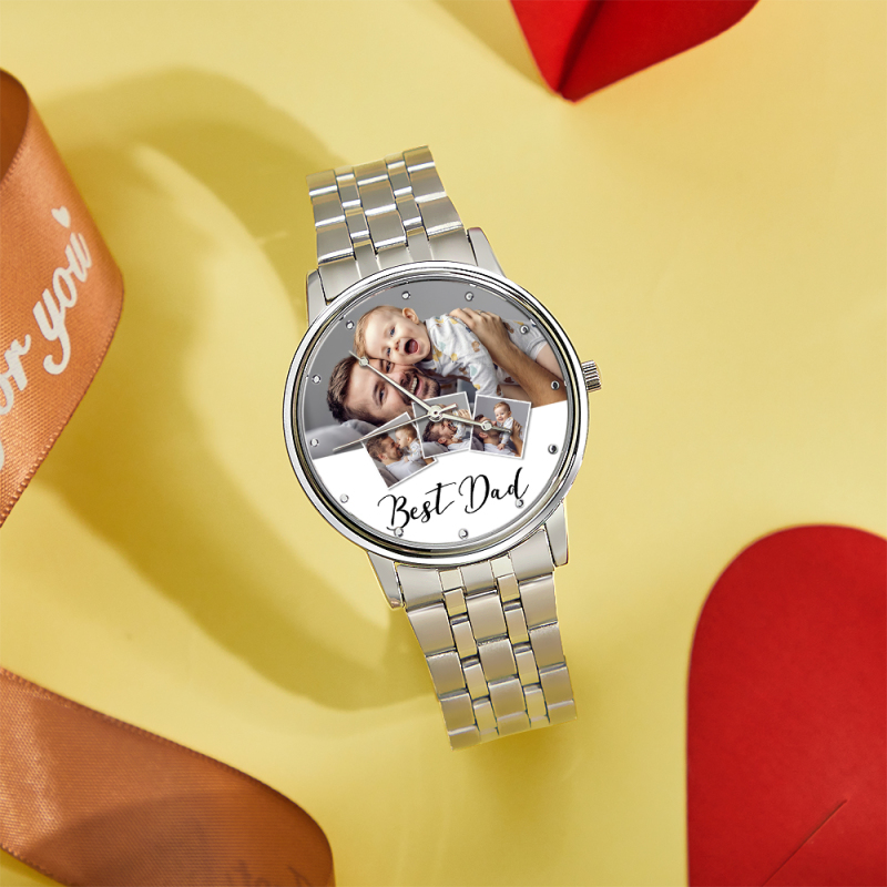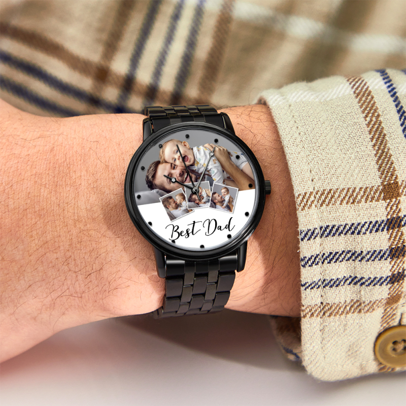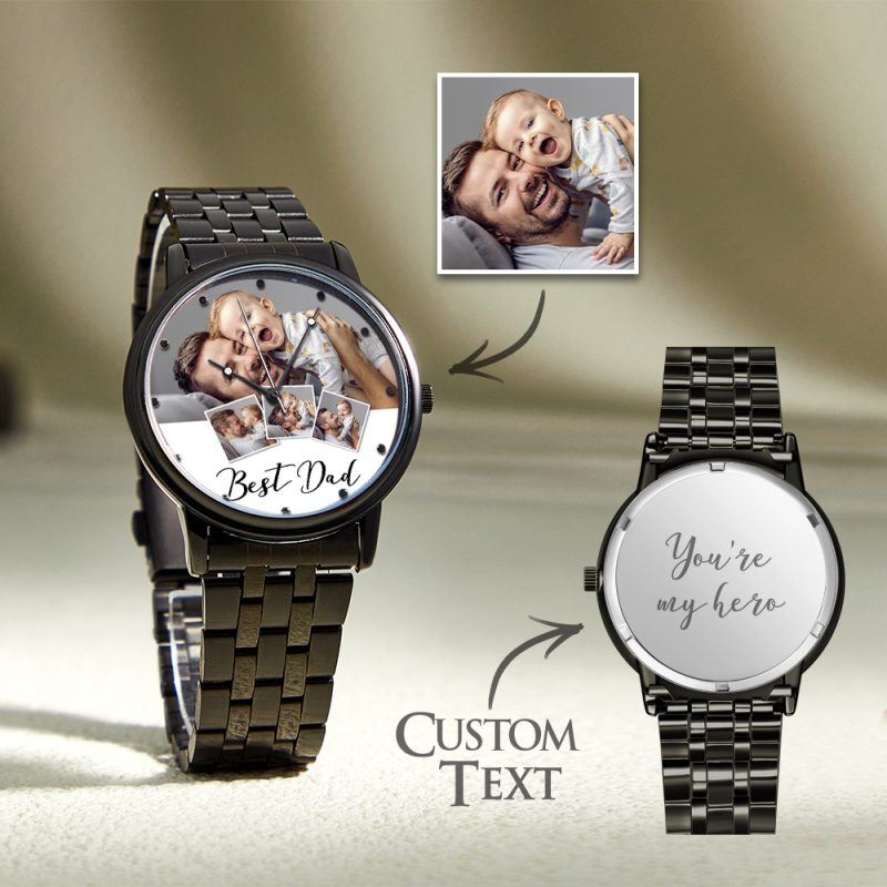 Personalized Engraved Photo Watch Men's Black Alloy Bracelet Photo Watch Father's Day Gifts For Dad