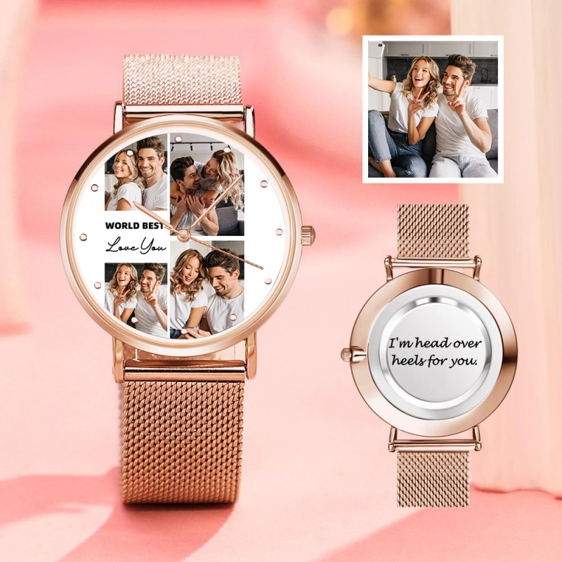 Watch face: Special Alloy and glass, outer diameter 1.57 in (4 cm) Watch band: Special Alloy, length 8.7 in (22 cm), width 0.7 in (1.8 cm) Surprise your loved one with a personalized photo watch that is custom made to suit any personality. The design image is directly printed inside the surface of the watch. Once you place an order, you will be able to preview how it will appear on the watch. Please remember that the high quality picture will come out better than the preview. This personalized photo watch cannot be refunded once we have started the manufacturing process. A personalized photo watch always makes a great gift and will never go out of style. Buy yours today!