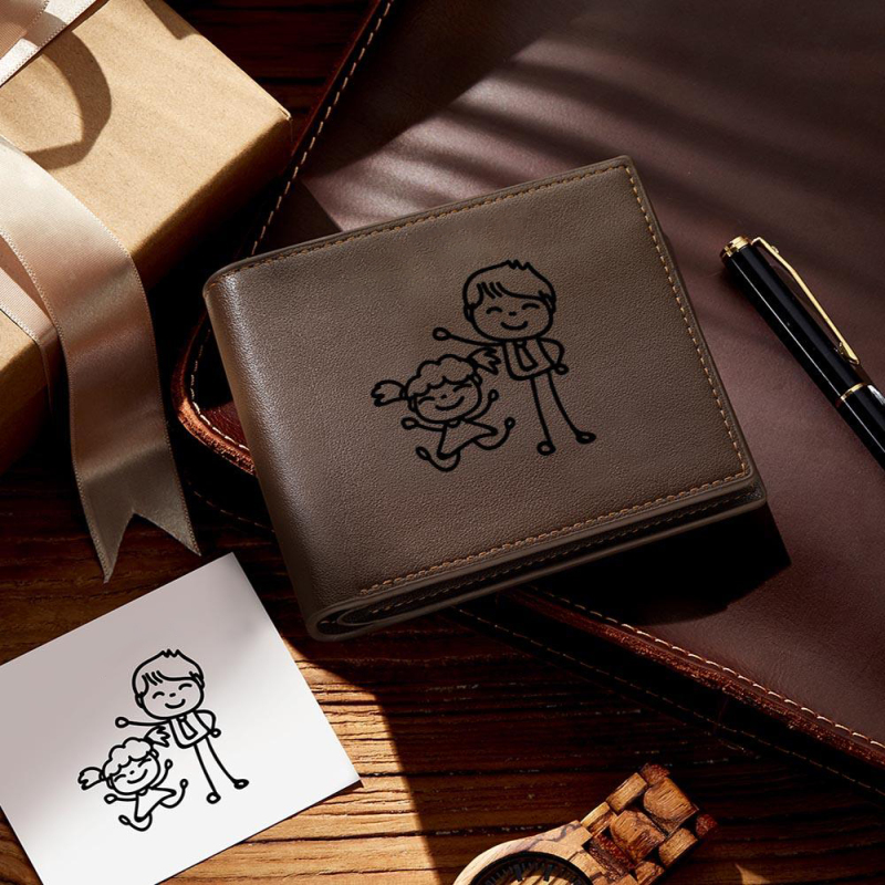 Personalized Hand Drawing and Text Wallet Engraved Wallet Gifts for Dad
