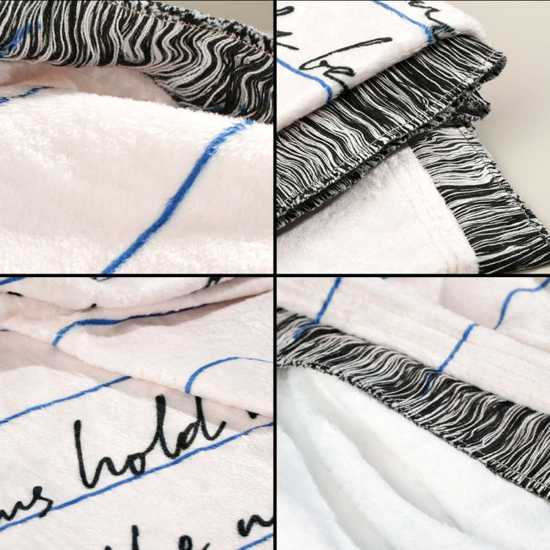 This personalized hand-written printed letter blanket is a unique and thoughtful gift for your loved one. Made with high-quality materials and featuring a heartfelt message, it's a heartfelt and meaningful way to show your love and appreciation. Available in a variety of sizes to fit any style.