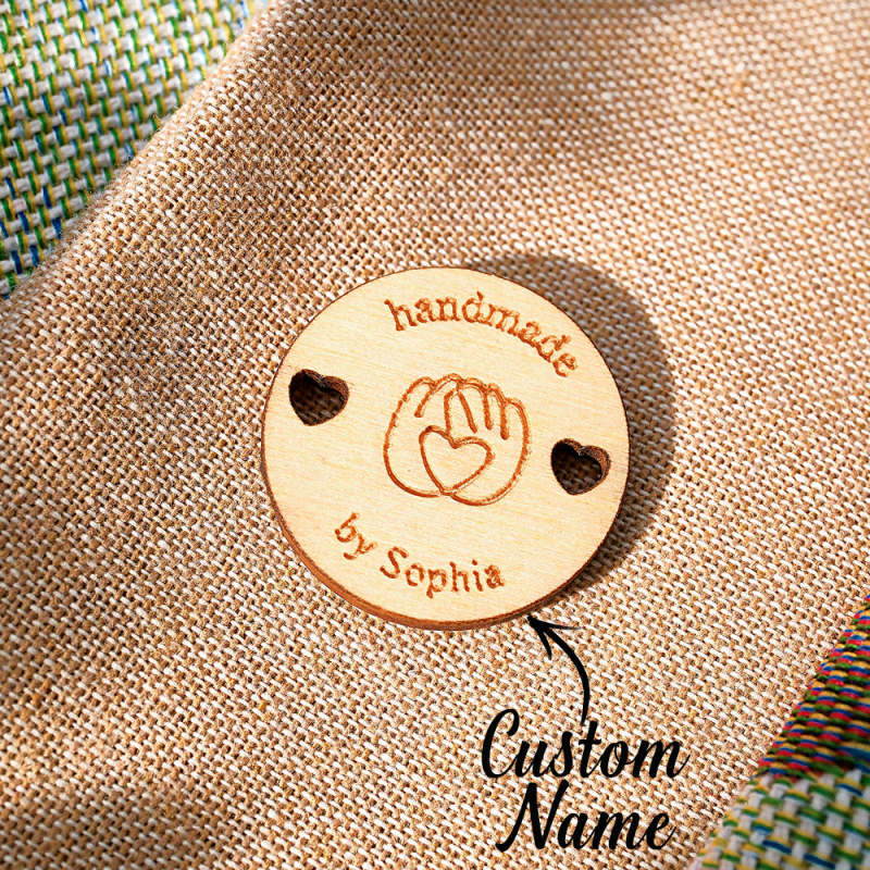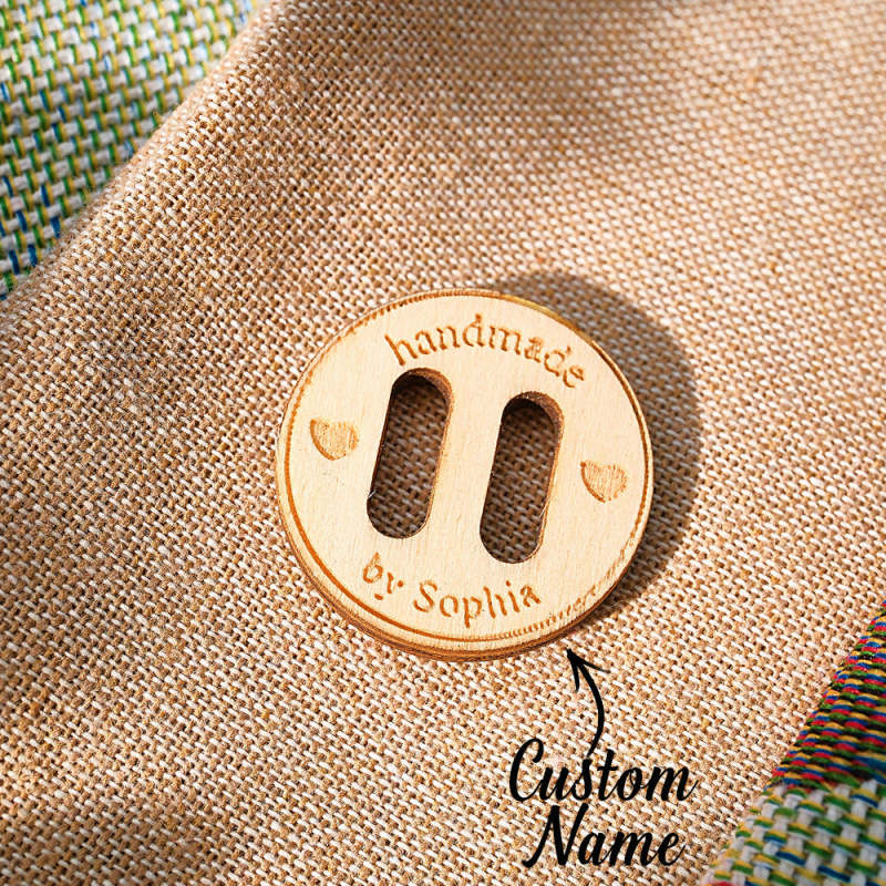 These charming wooden buttons feature a personalized name inscription, perfect for adding a personal touch to any garment. Whether for a mother, grandmother, or knitting/crocheting enthusiast, these labels make a thoughtful and unique gift. Set of 15 buttons included.