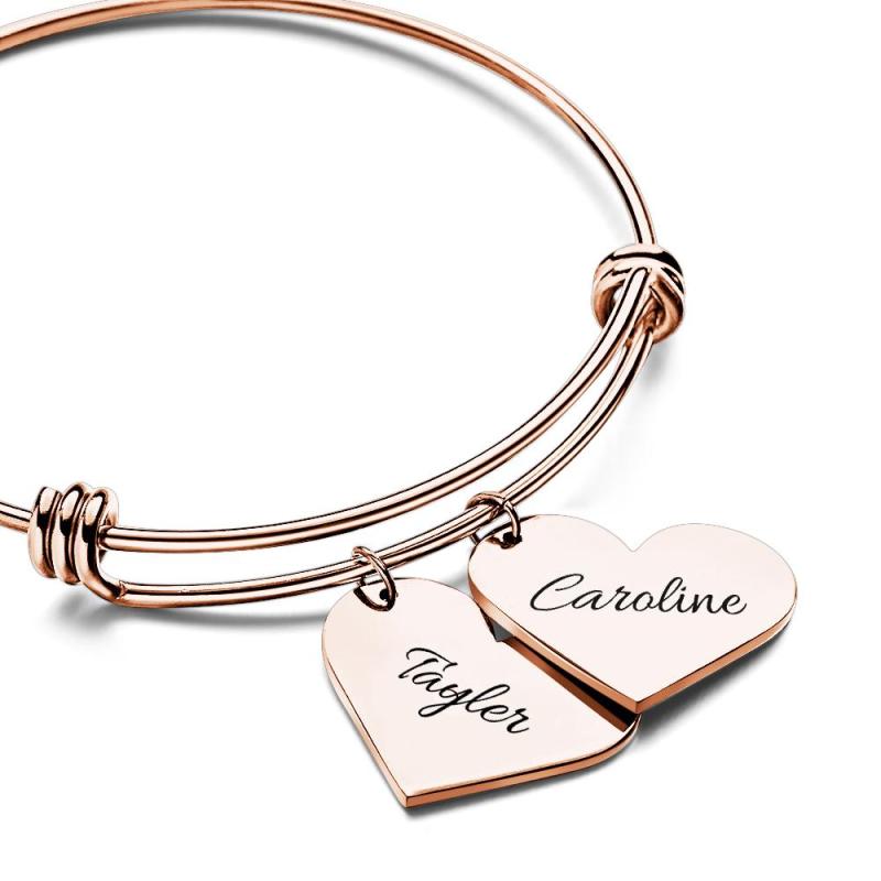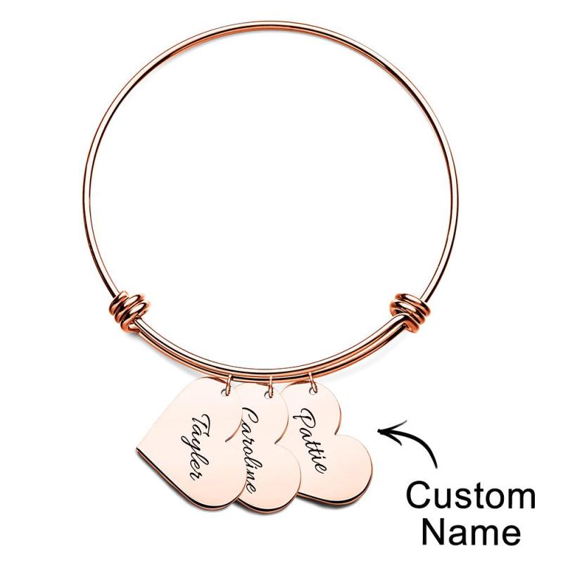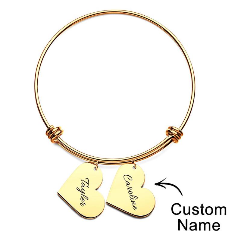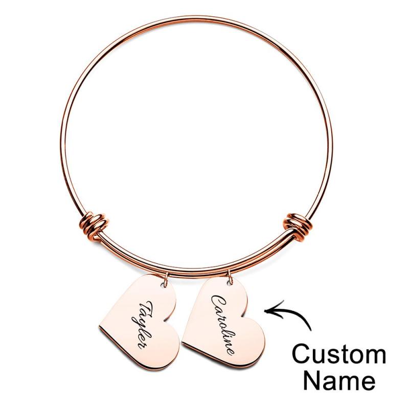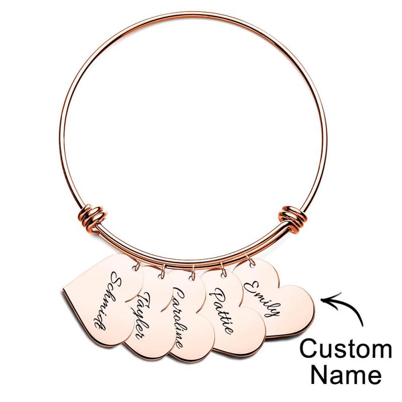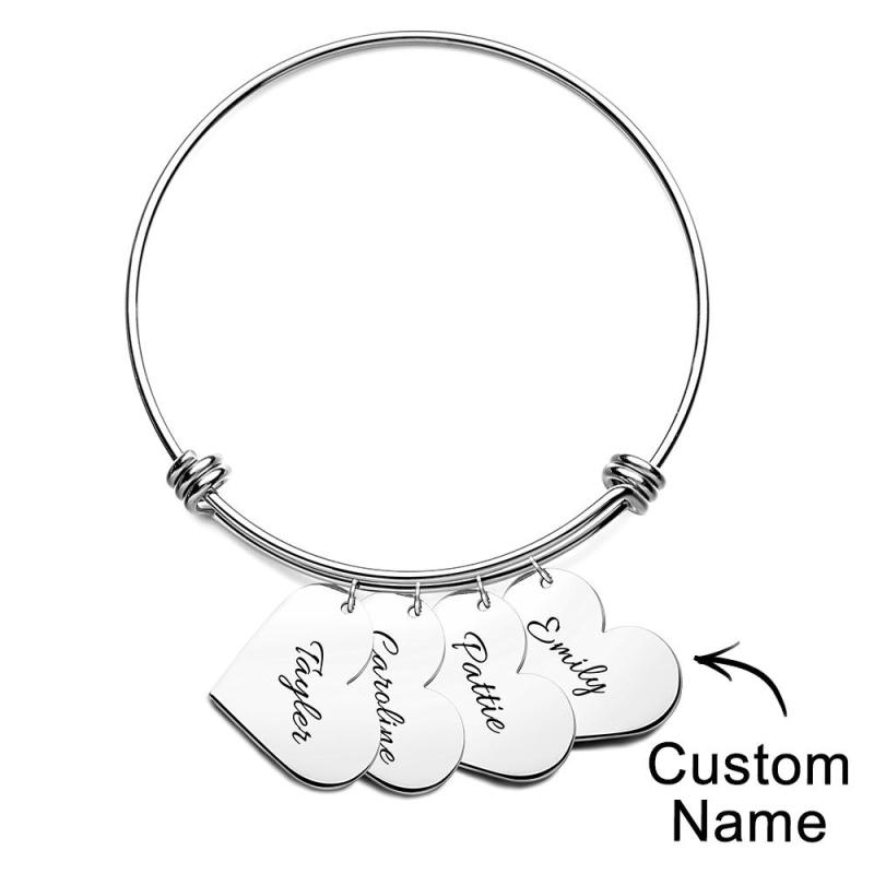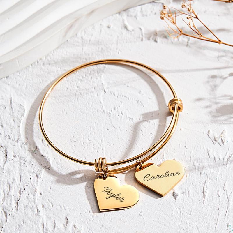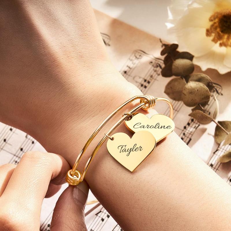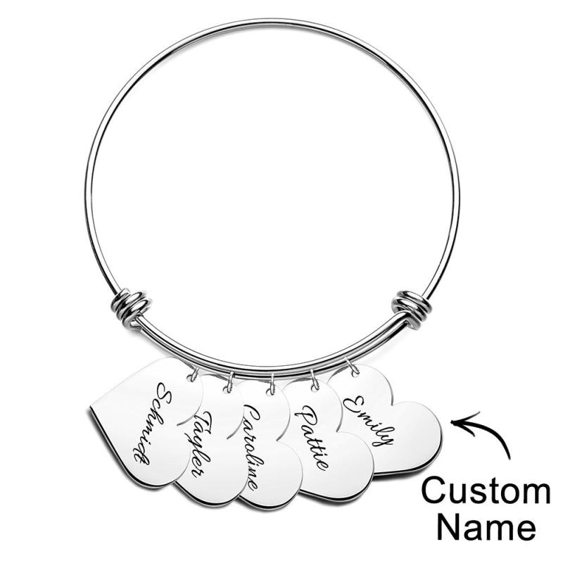 Personalized Heart Charm Bracelet Gifts for Her Name Bangle Bracelets for Women Handmade Jewelry Engraved Bracelet for Mom